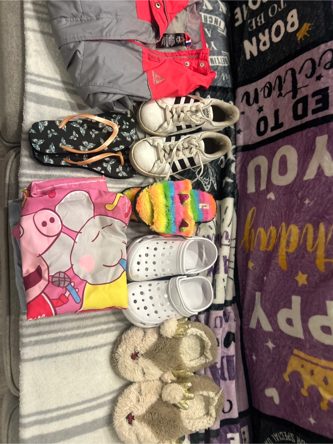Pants, sweatsuit , sweaters shorts ,jean jackets shirts ,shoes,slippers,crocs