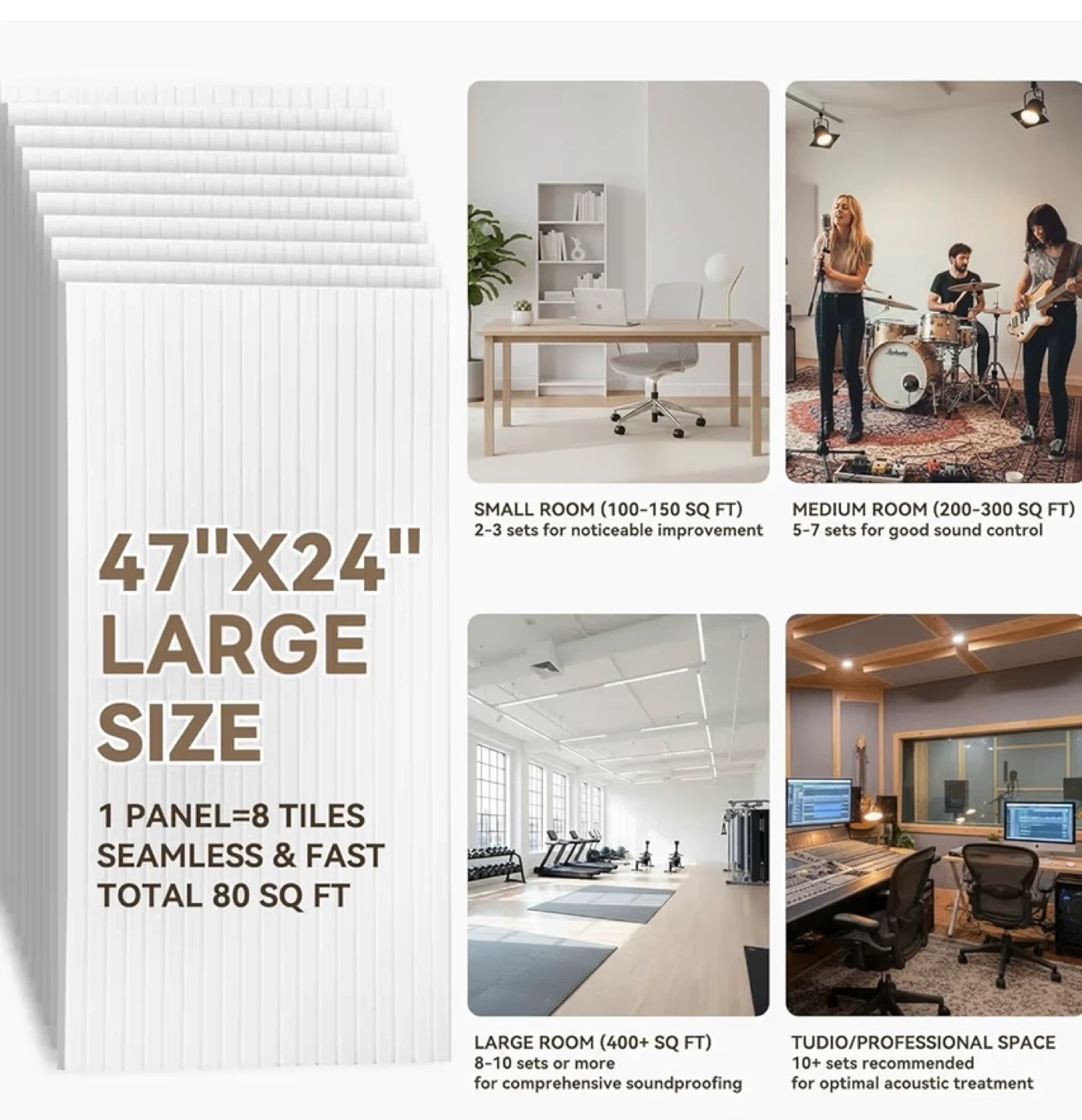 10 Pack White Acoustic Panels - 47"x24" Polyester Fiber