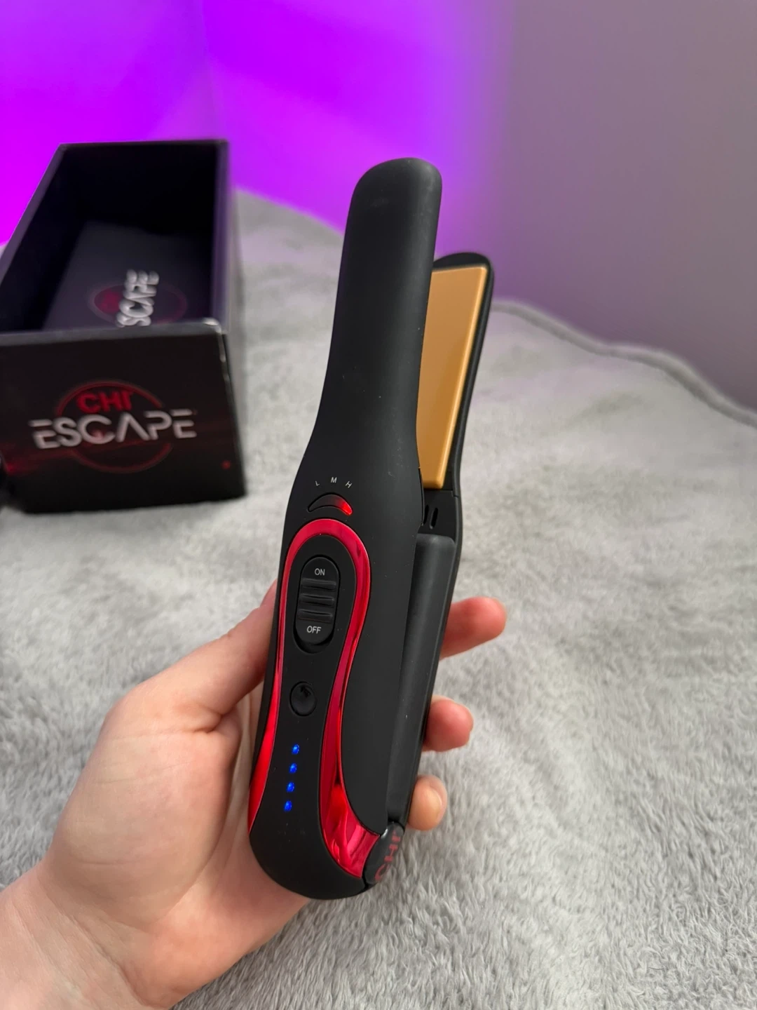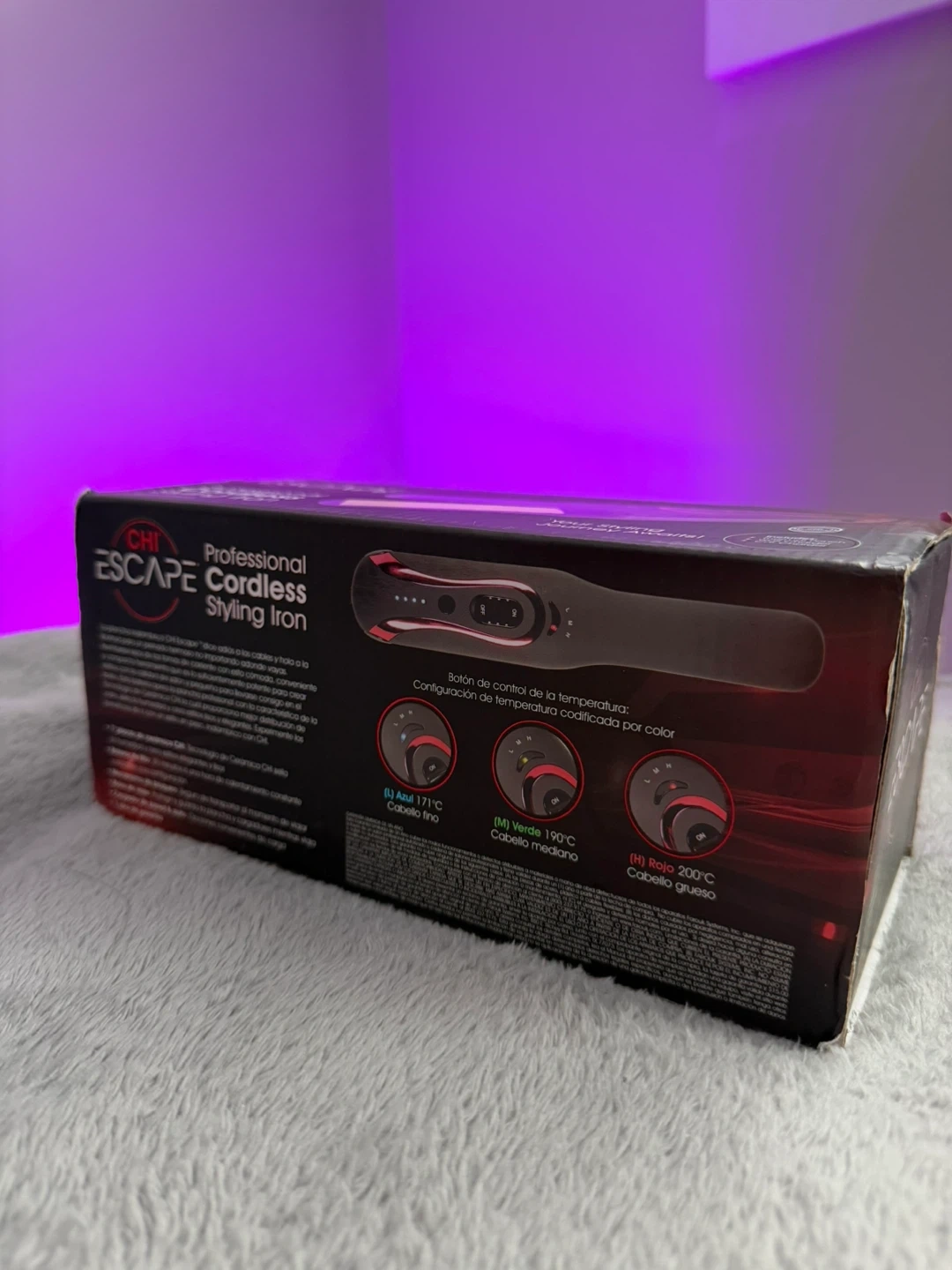 This is the CHI Escape Professional Cordless Styling Iron. It's a professional cordless styling iron with a travel pouch and car charger included. Perfect for on-the-go touch-ups and styling wherever you are!