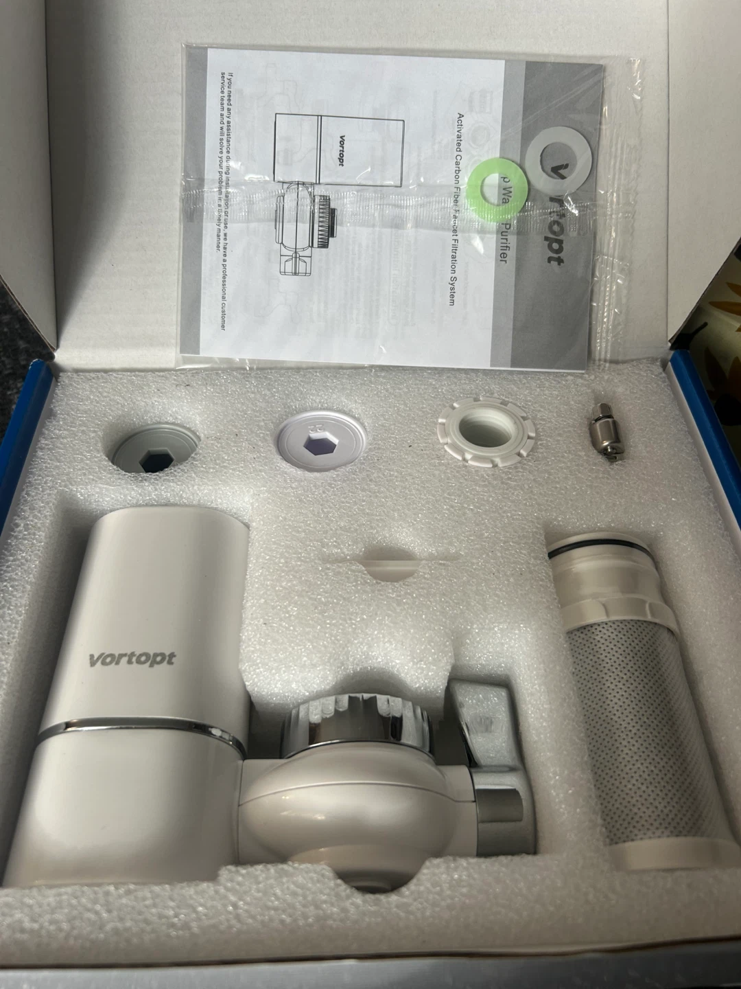 I'm selling a brand new Vortopt faucet water filter! It's still in its original box and includes all the components. This filter features: