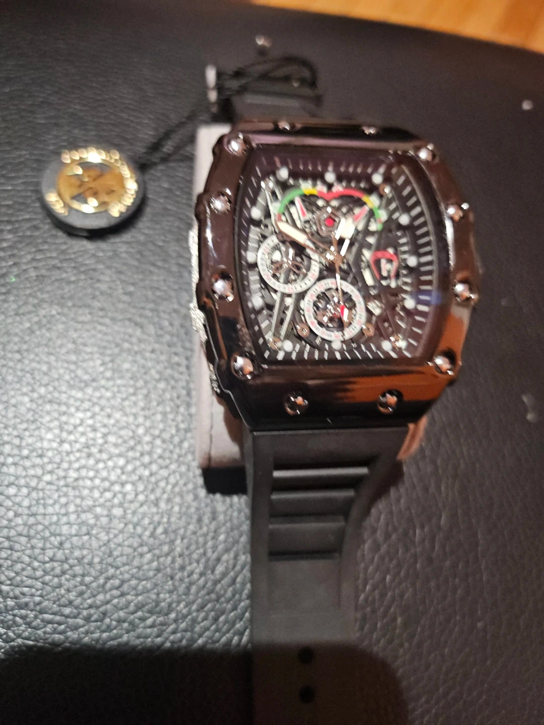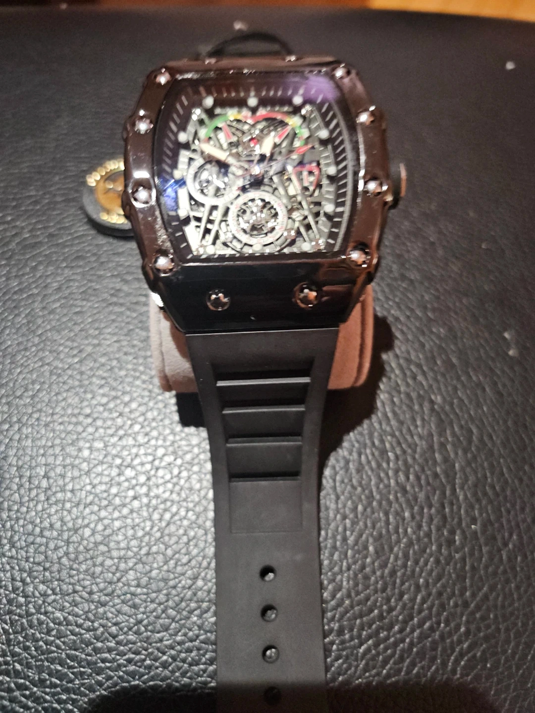 Selling a stylish men's chronograph watch with a black band. It features an intricate dial with multiple subdials and a sporty, modern design. The watch appears to be in good condition and would make a great addition to any collection