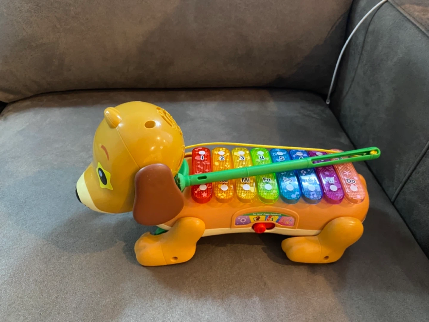 Check out this VTech Sing and Discover Xylophone! It's in great condition and ready for a new little musician. This interactive toy combines music and learning, making it perfect for toddlers. It features colourful keys and fun sounds that will keep your child entertained while developing their motor skills and musicality. The xylophone stick tip is broken plastic it still works