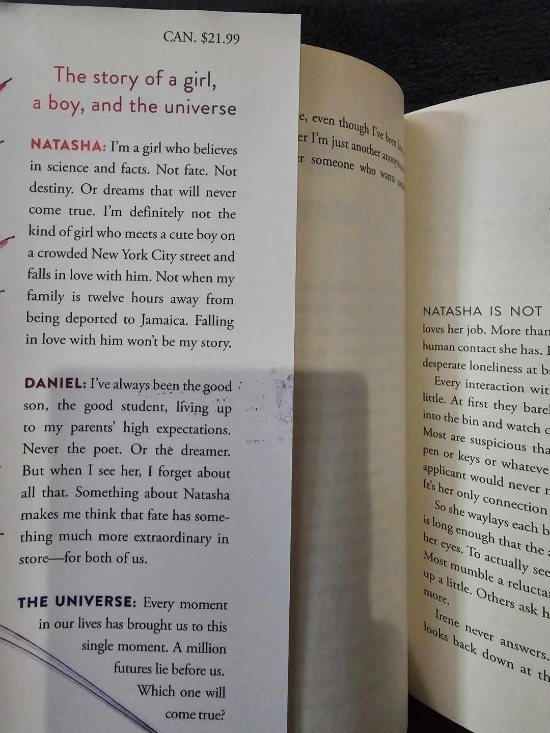 Selling a copy of "The Sun Is Also A Star" by Nicola Yoon! It's a #1 New York Times Bestseller and has received praise from various publications like Entertainment Weekly and MTV. Originally priced at $21.99 CAN. A great read for YA book lovers!