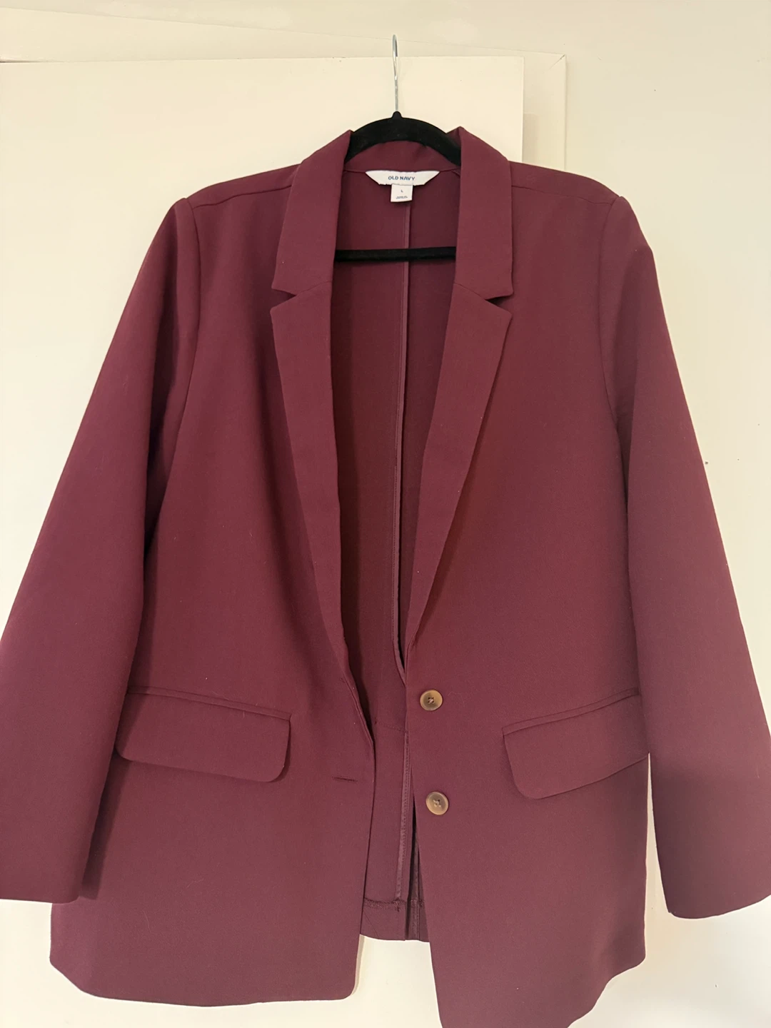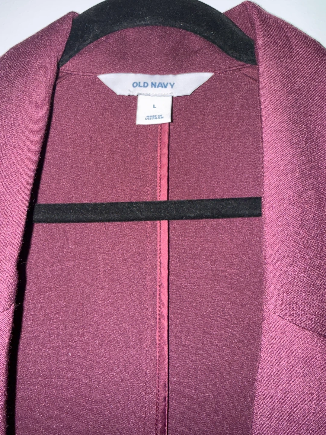Selling a stylish burgundy blazer from Old Navy in size L! It's in great condition and ready to add a pop of color to your wardrobe. Perfect for dressing up or down!