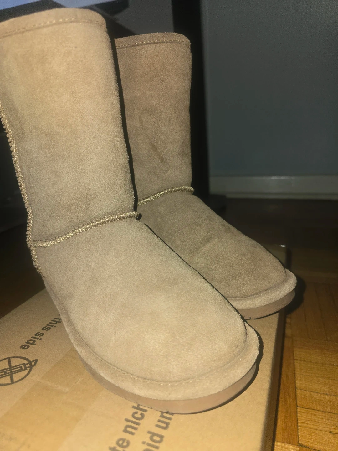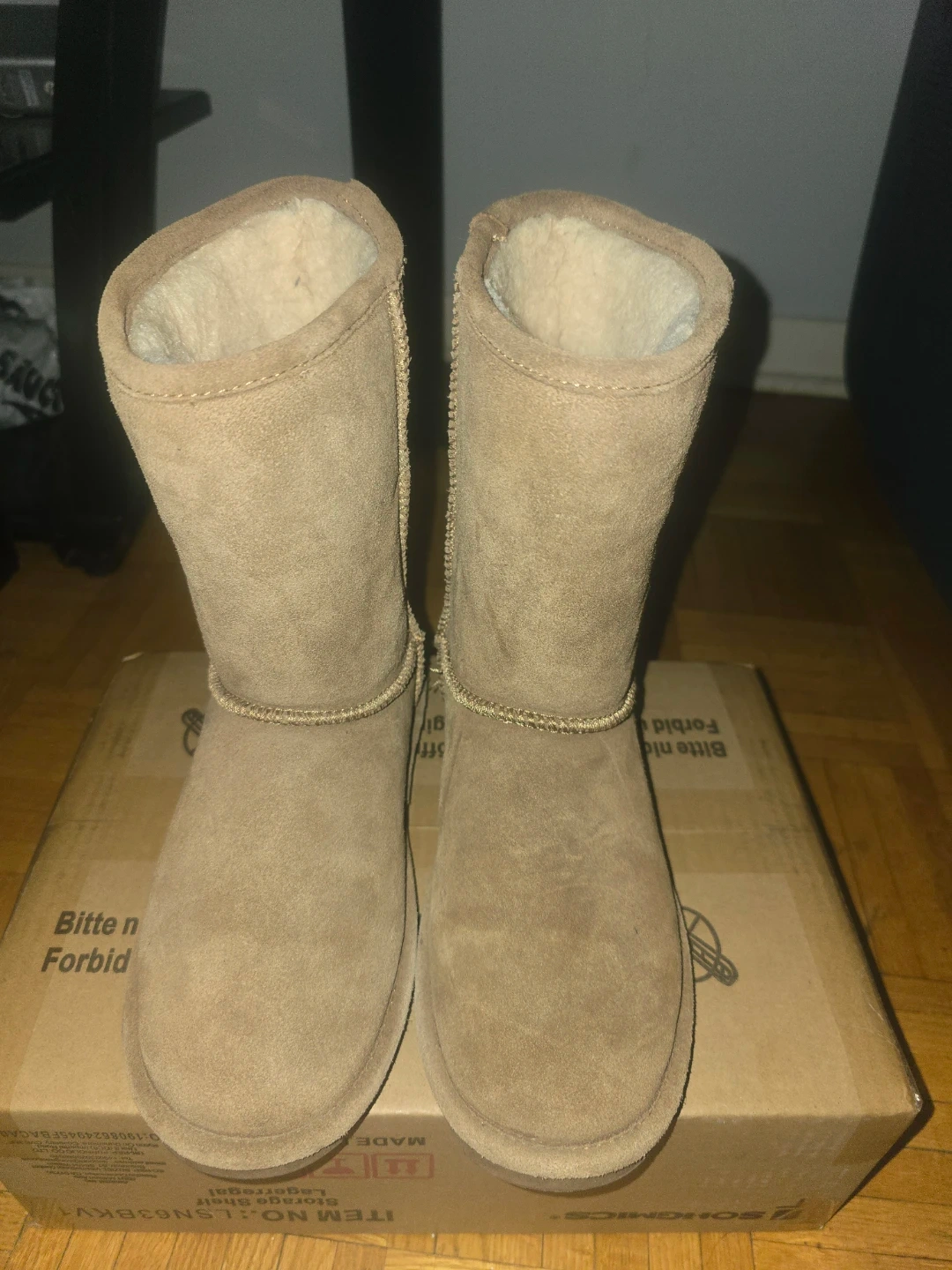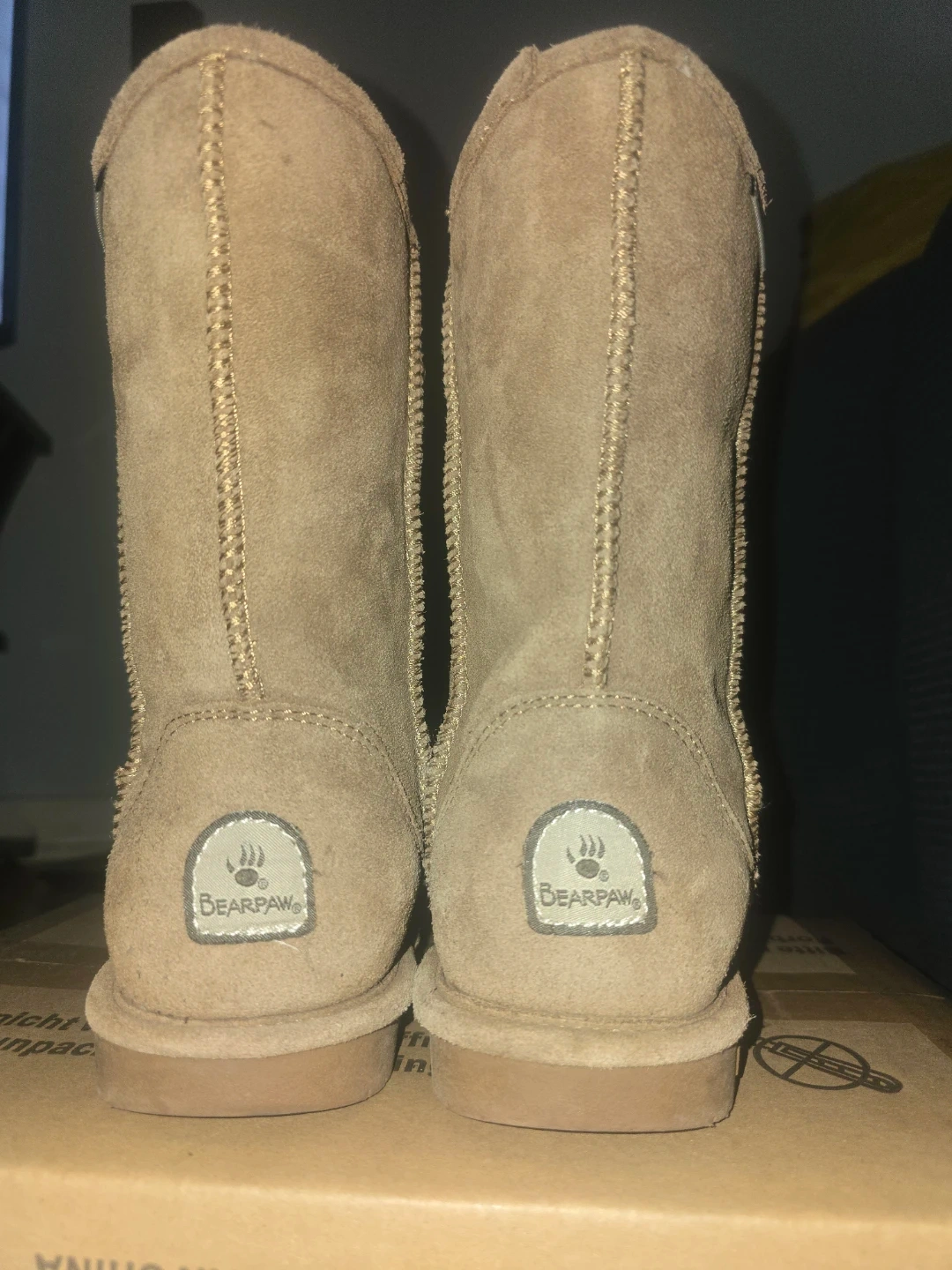 Selling a pair of BEARPAW women's boots in a neutral, versatile colour! These are super comfy and great for the colder months. They're a size 8 and made of suede, so they're nice and soft. Perfect for keeping your feet warm and cozy!