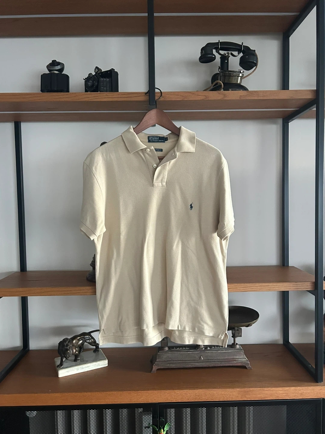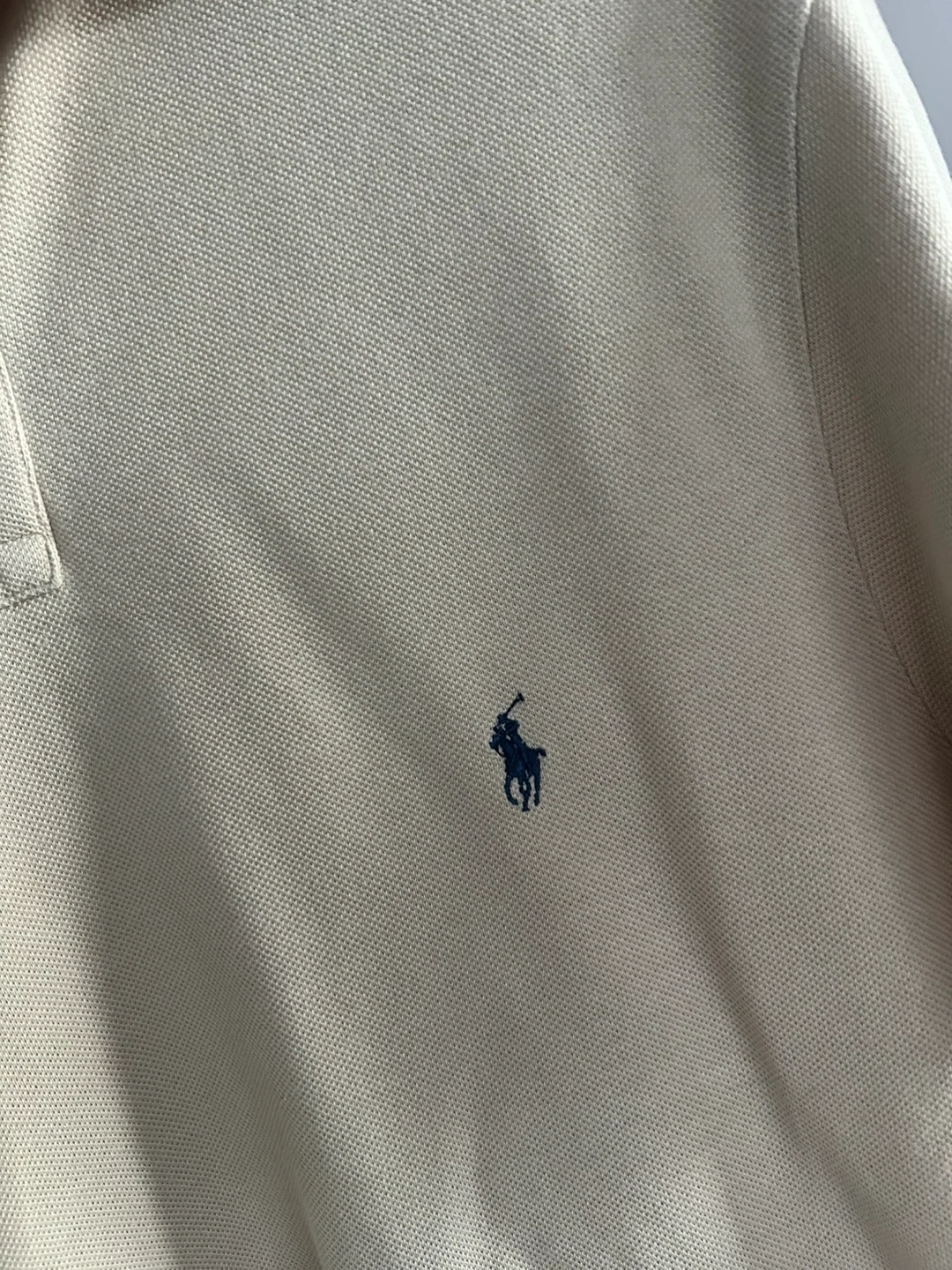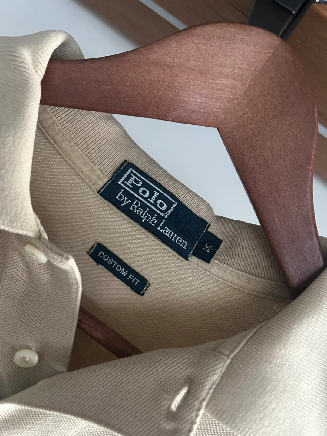 Selling a Polo Ralph Lauren polo shirt in a custom fit. It's a size medium and in a neutral, beige colour. Great for a casual, classic look!