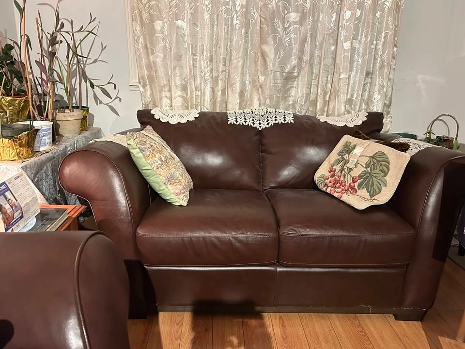 Comfortable leather couch in very good condition. No rips, tears, or peeling. Leather is soft and well maintained. From a smoke-free home.