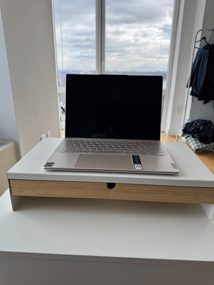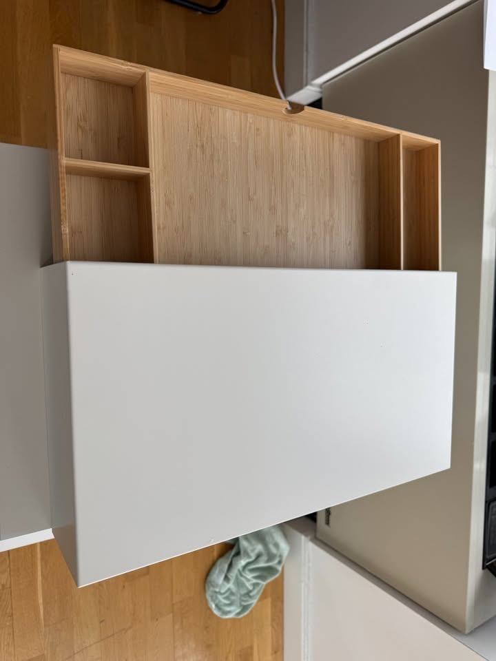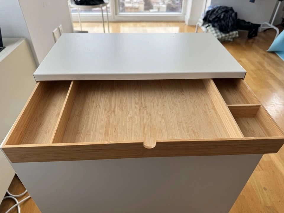 IKEA ELLOVEN Monitor Stand - White With Bamboo Drawer
