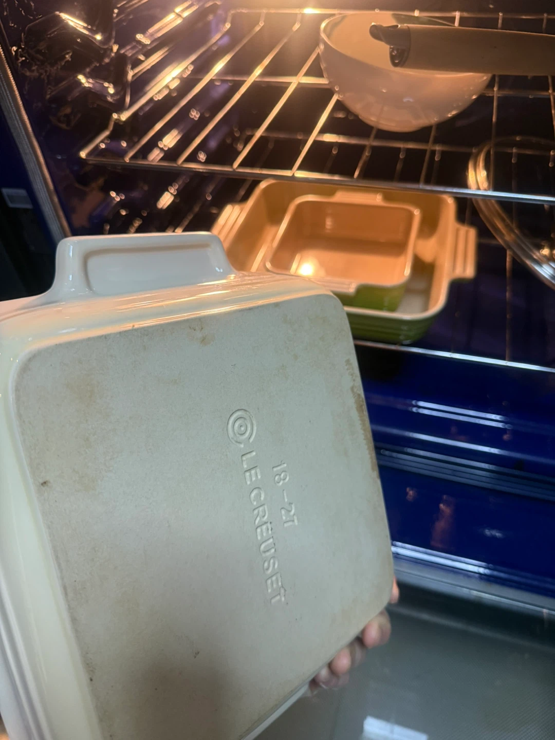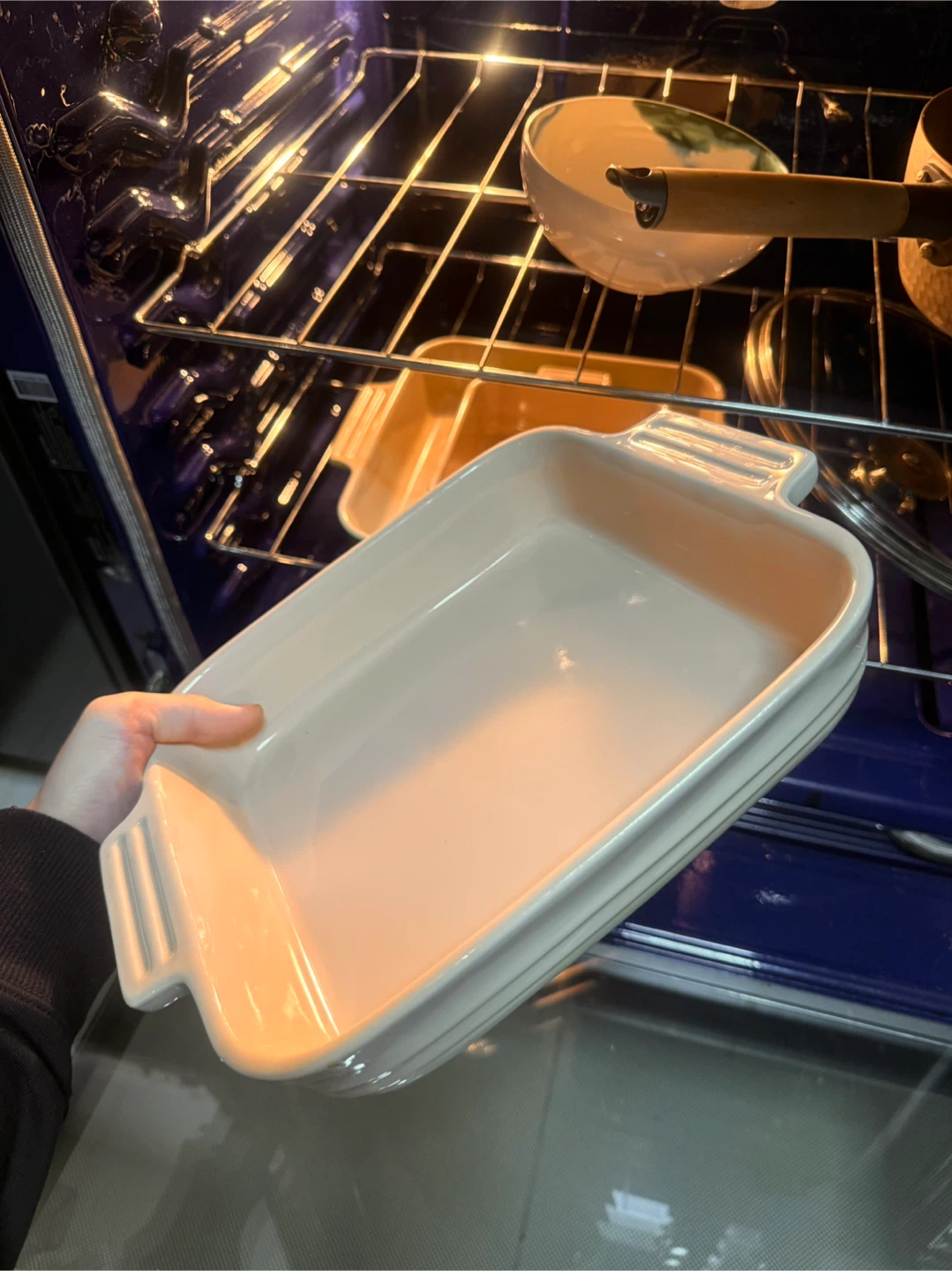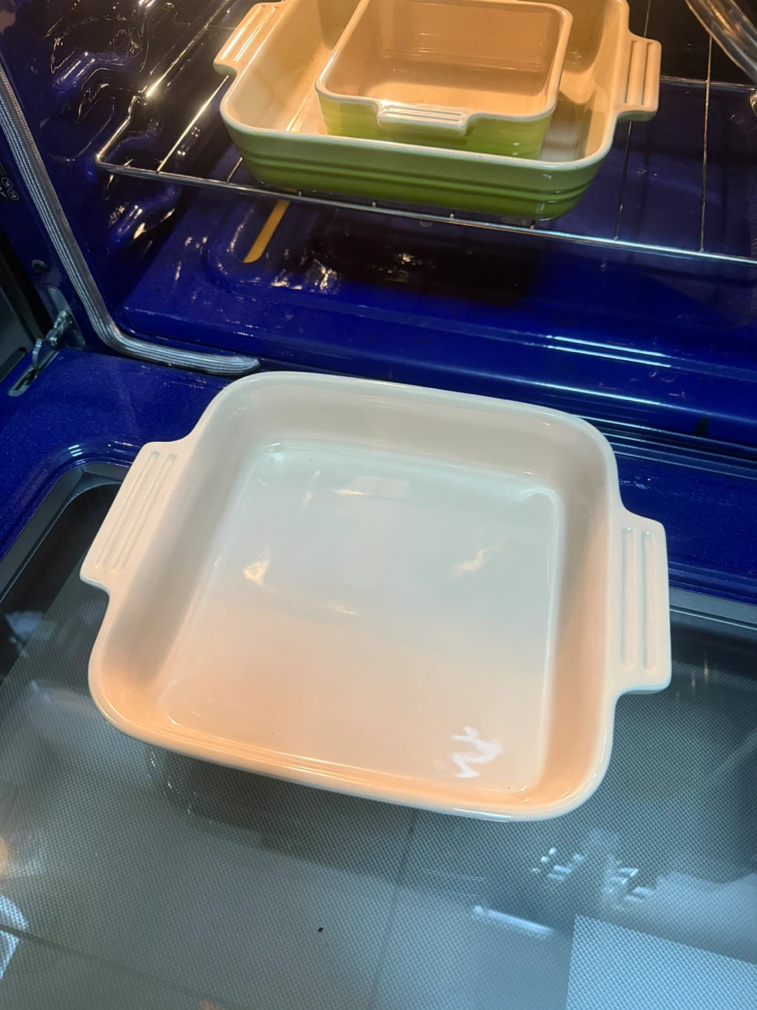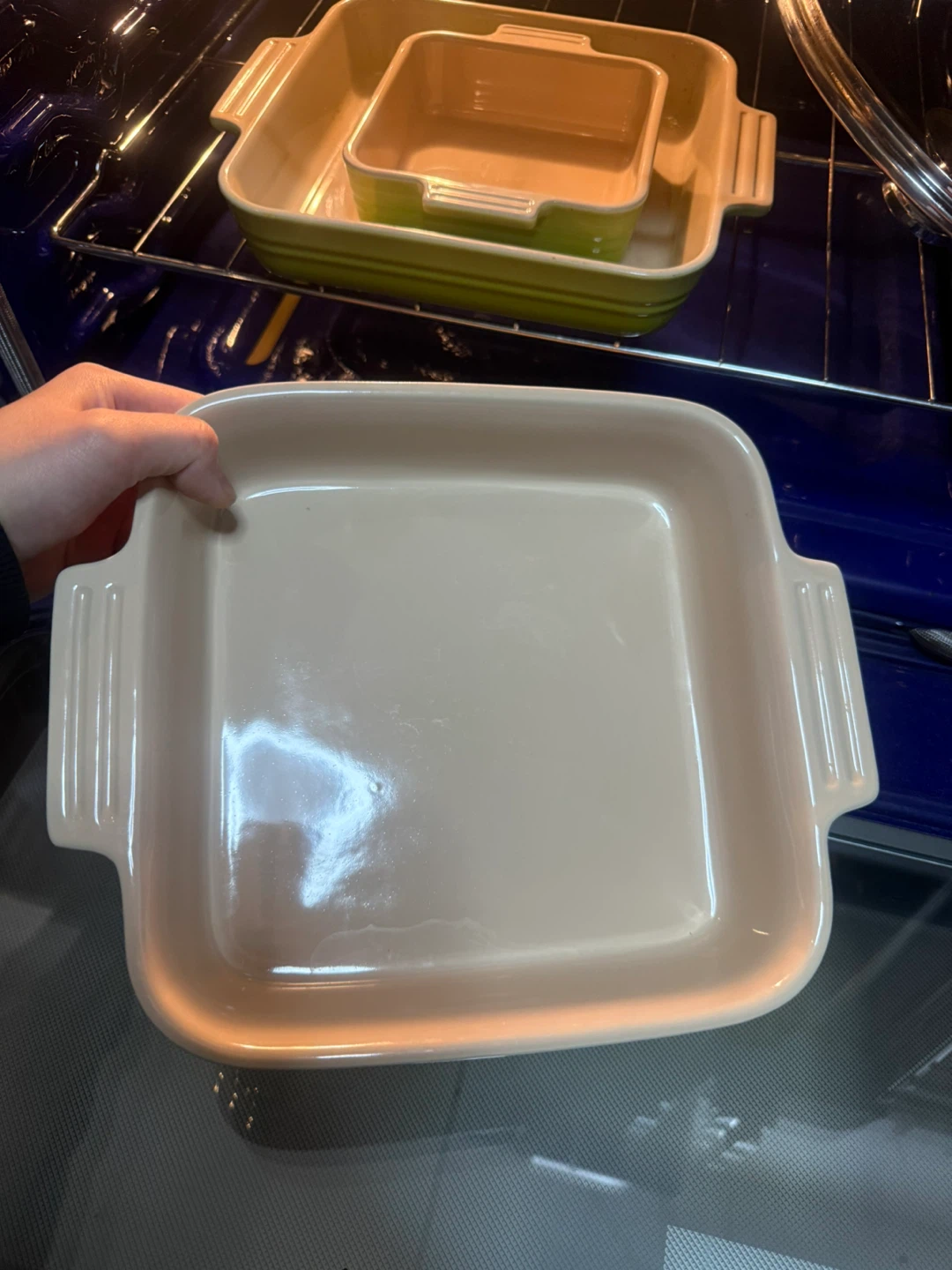 Le Creuset square baking dish in cream white color. It's in great condition and ready for your next baking project! The dish is a beautiful neutral color that will complement any kitchen decor, size 9”x 9”. Pick up from queens elmhurst