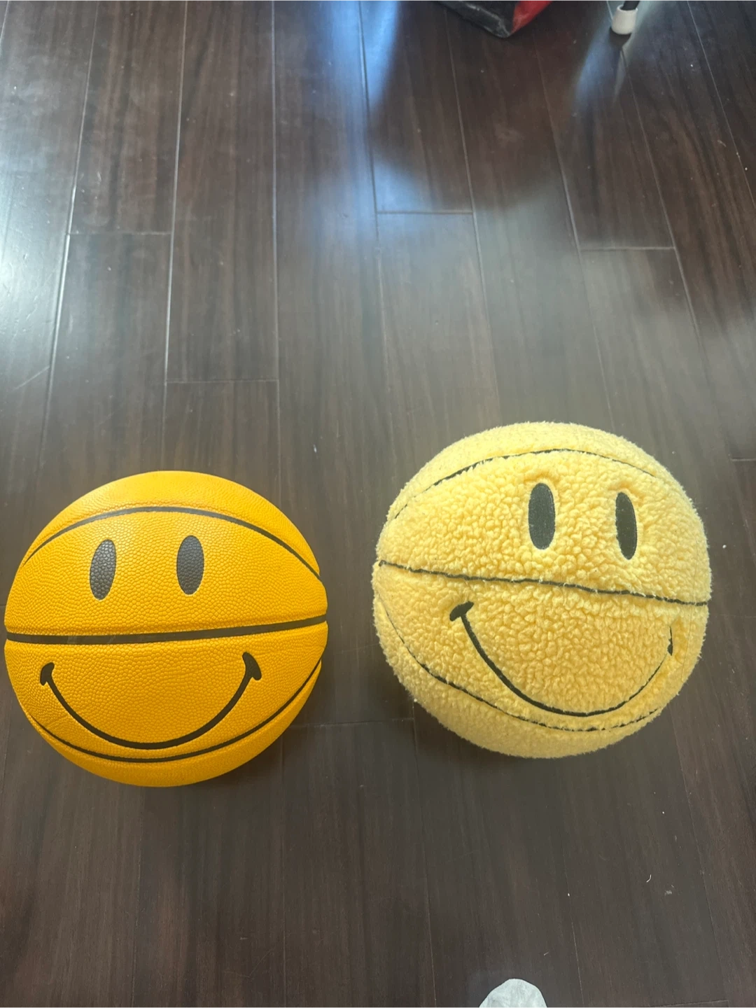 Selling two basketballs with smiley face designs! One is a classic yellow basketball material, and the other is a soft, plush yellow material. They're sure to bring a smile to your game!
