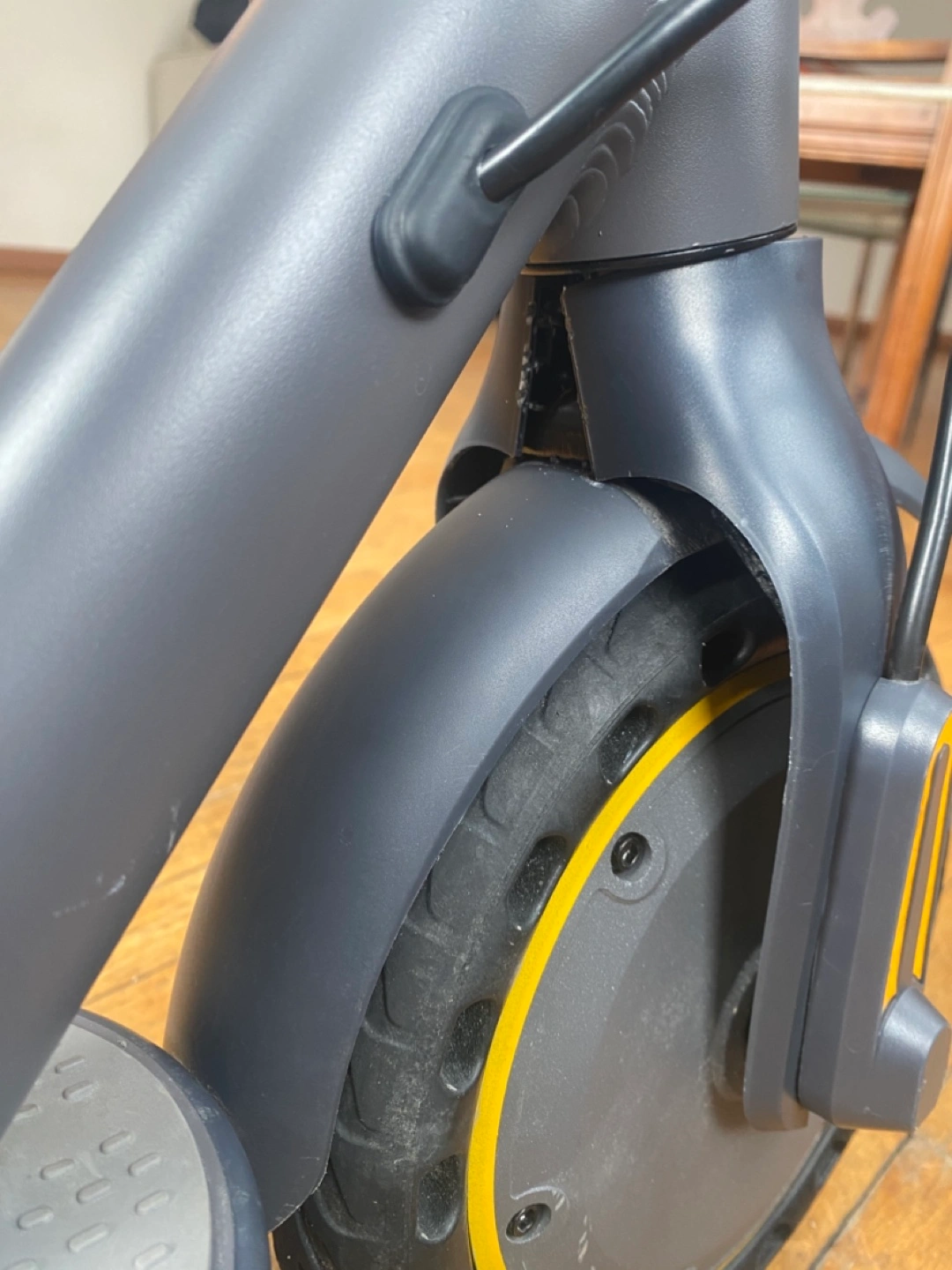 Front fork bent from hitting a hard bump, preventing rotation of handlebars. Everything else in like-new condition!