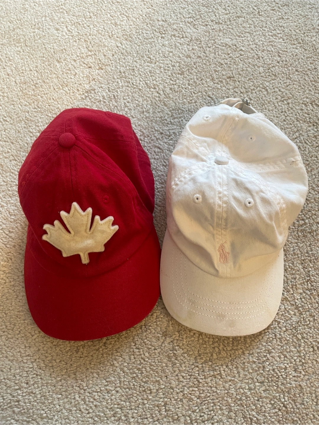 Selling two gently used caps! One is a white Ralph Lauren cap, size 4-6X. The other is a red Roots cap with the classic beaver logo. Both are in great condition and ready for a new kiddo!