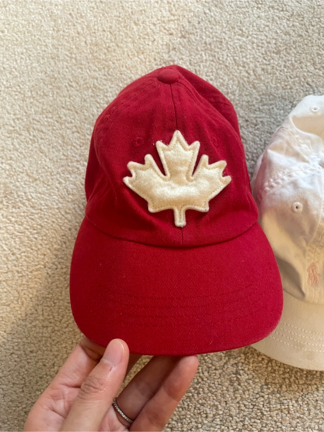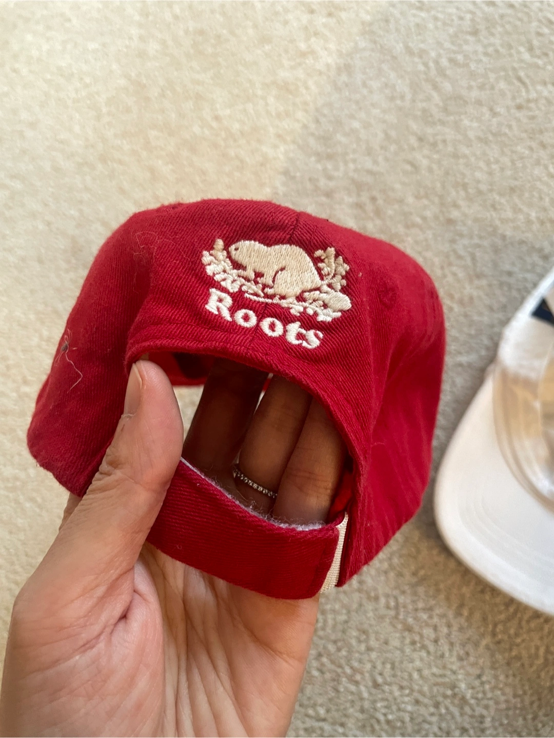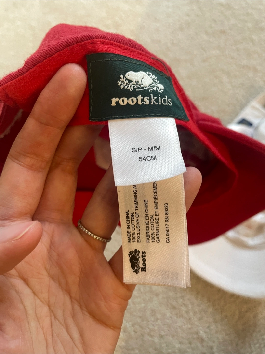 Selling a cute Roots Kids hat! It's red with a maple leaf design on the front. The size is S/P-M/M, which is 54cm. Perfect for your little one!