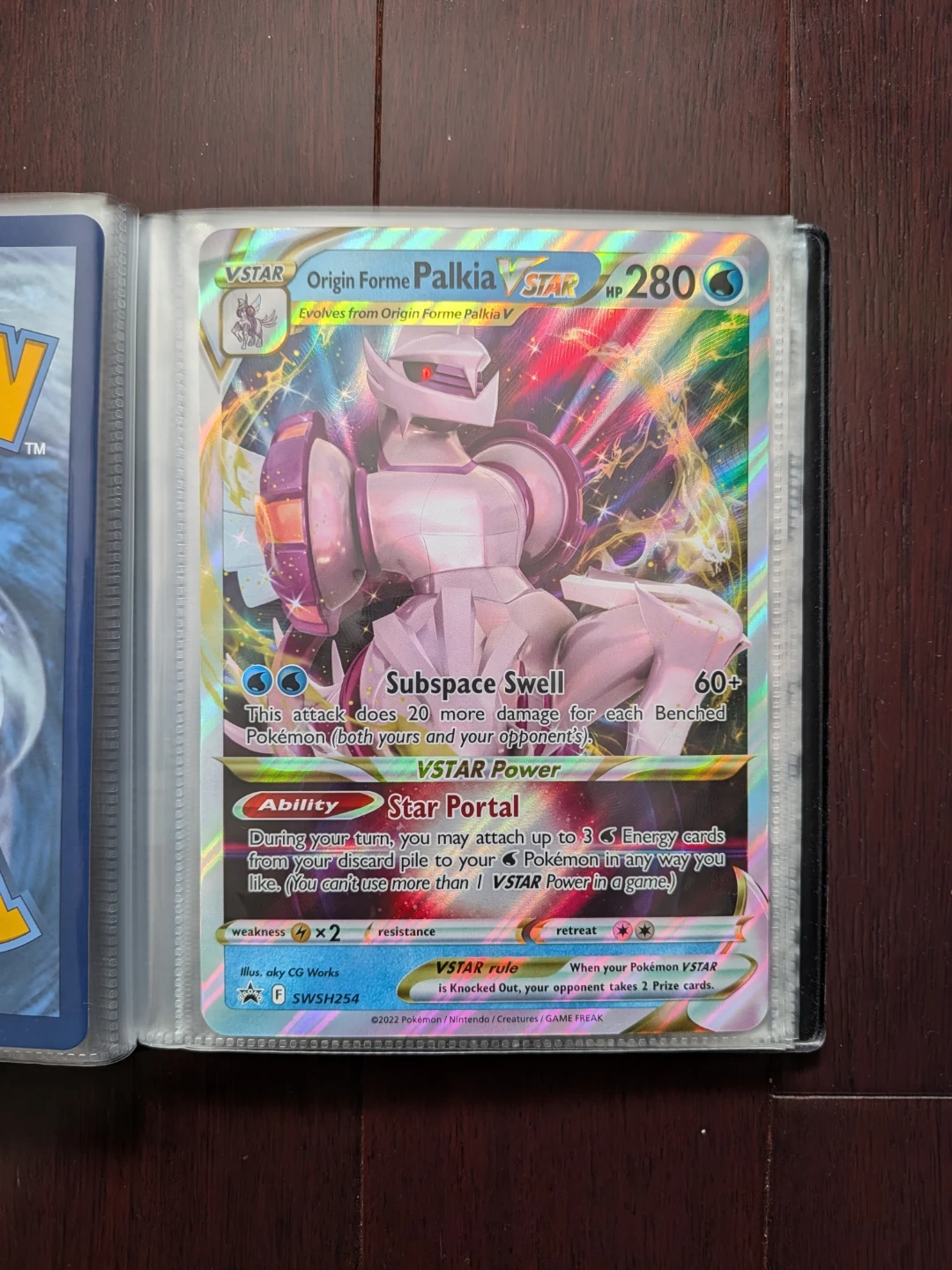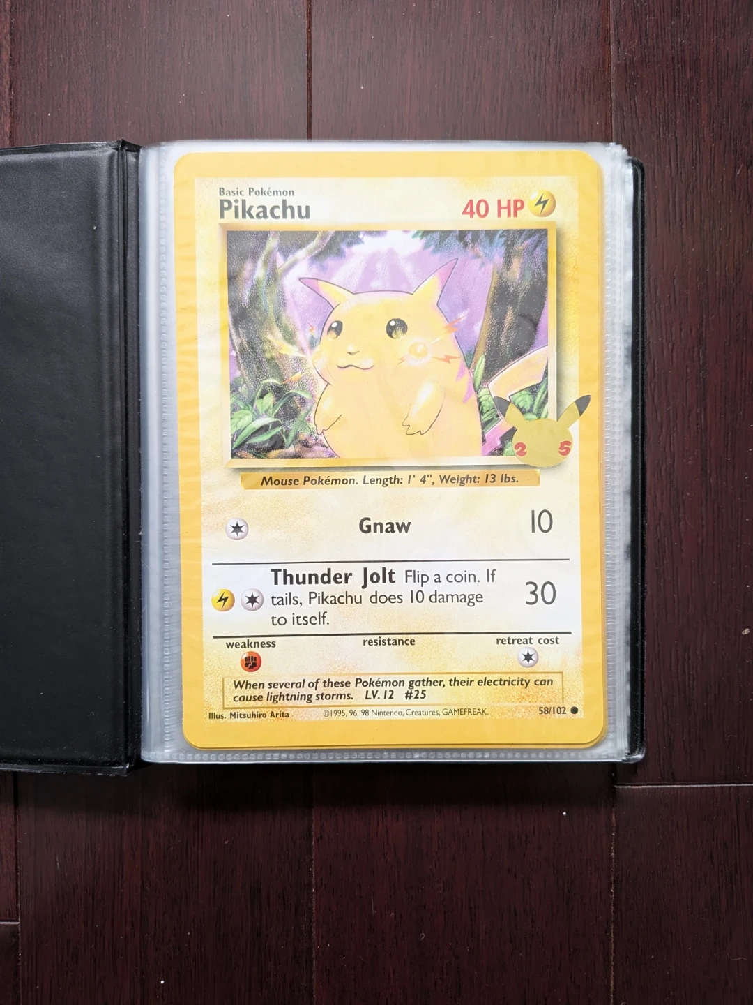 Pokemon Jumbo Card Binder with 12 jumbo cards in it. 3 cards are not shown in the pictures but are included: Celebrations Charmander, Squirtle and Bulbasaur. Cards are in excellent condition. Located in Brantford.