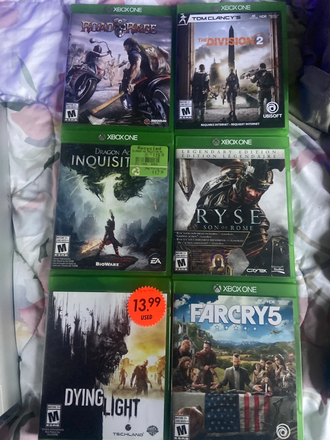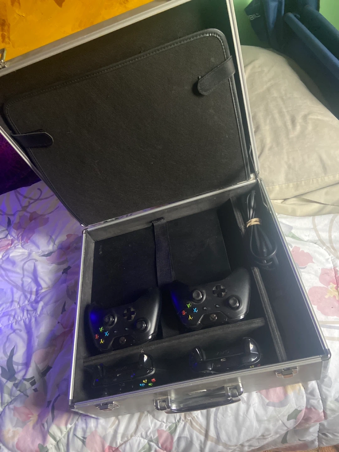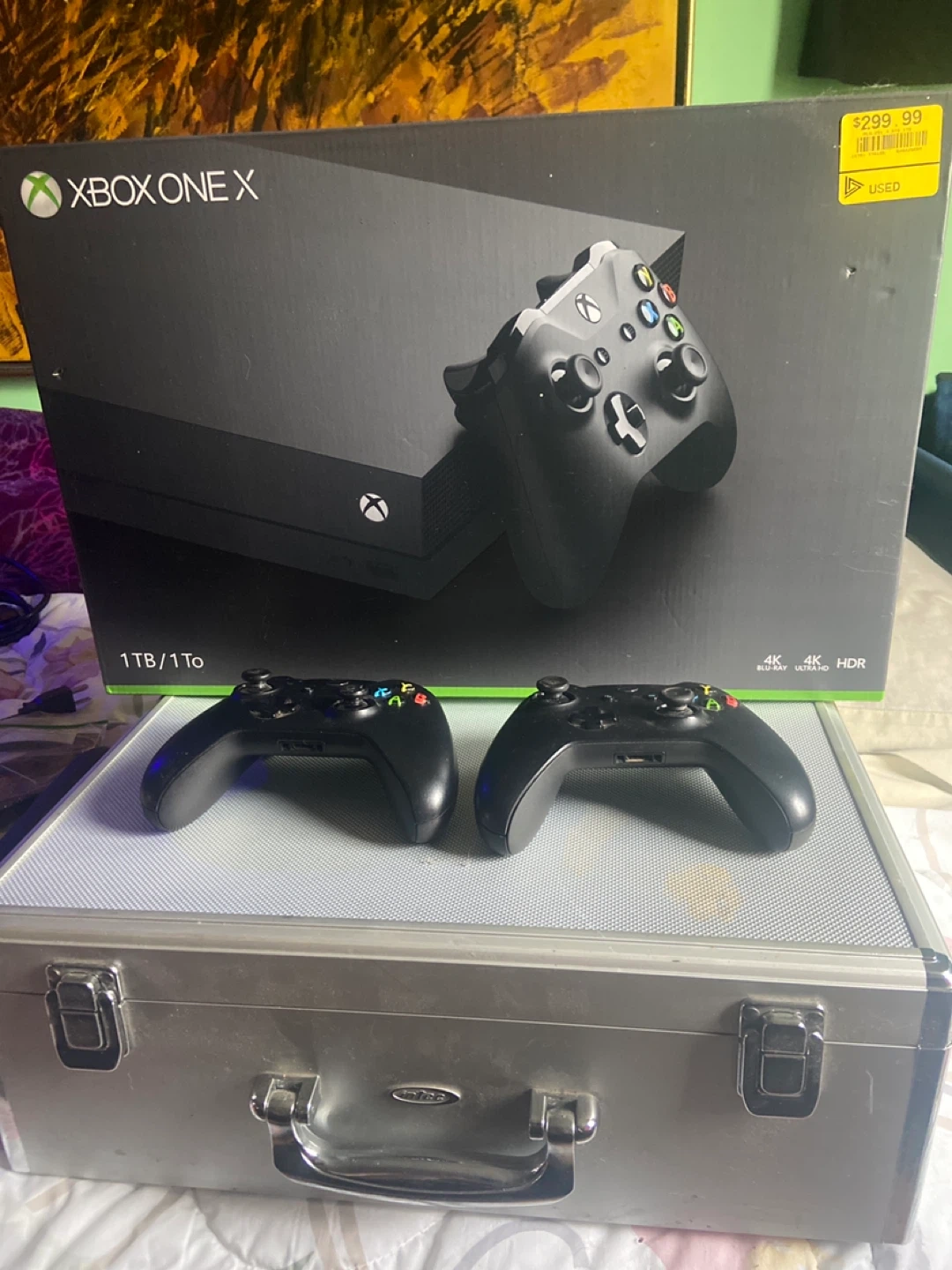 Selling an Xbox One X 1Tb HD. Includes the console, several games like Road Rage, The Division 2, Dragon Age Inquisition, Ryse Son of Rome, Far Cry 5, and Dying Light. Also includes four controllers and rechargeable batteries and charger. Comes with a carrying case for travelling & spare cords, so you don’t have to mess with your home setup! Everything is in good condition, works great, just can’t find time to play it anymore. Open to trades, OBO.