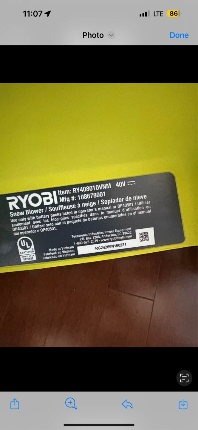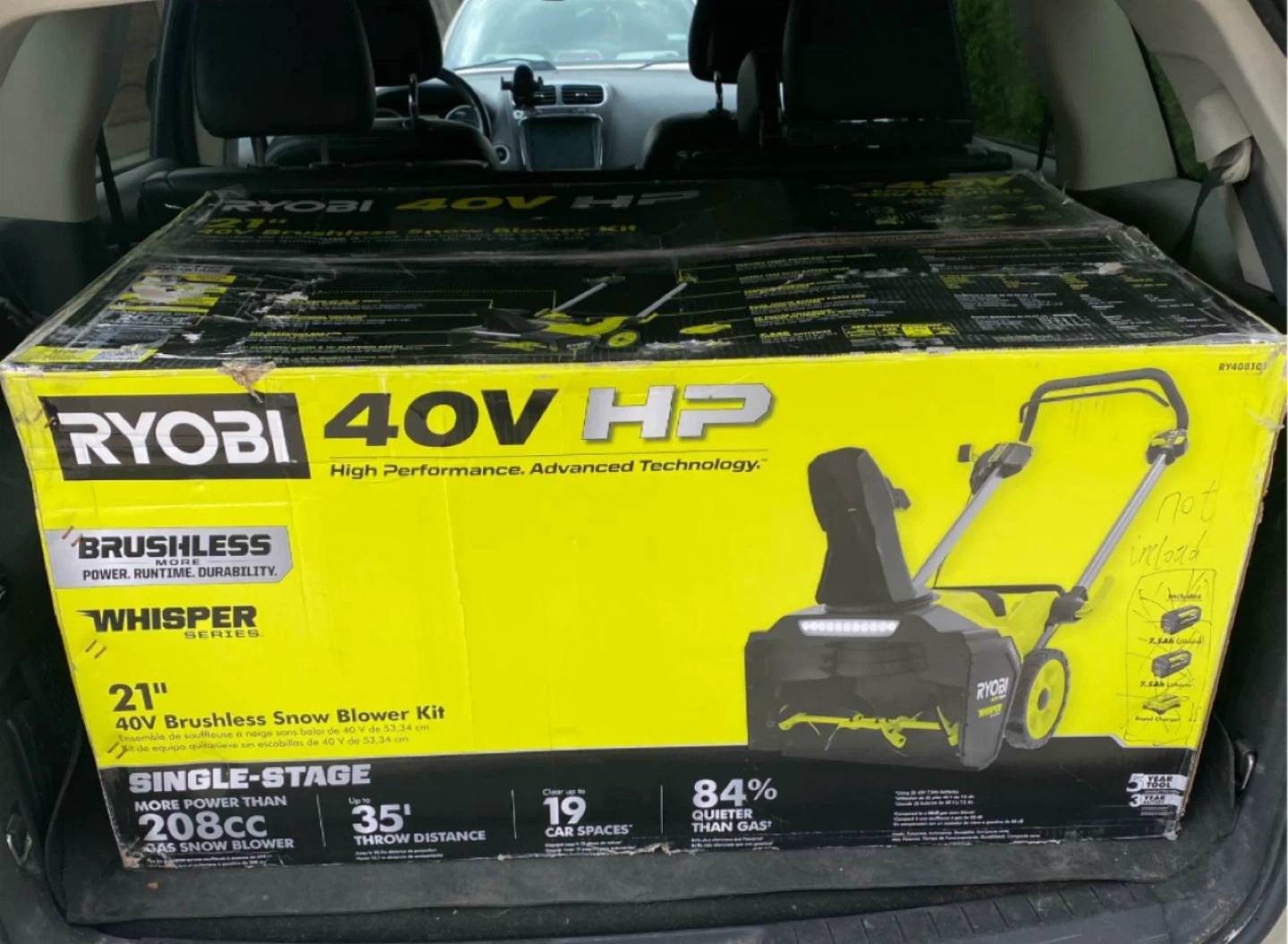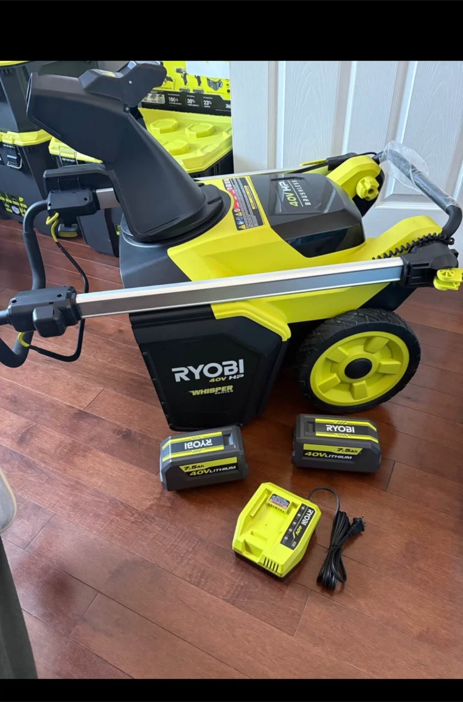 I'm selling a Ryobi 40V HP single-stage cordless snow blower, equipped with a 21-inch clearing width and powered by two 40V batteries for robust performance. This unit is designed to clear snow up to 13 inches deep, making it ideal for quick and efficient snow removal around your home. This unit is brand new.