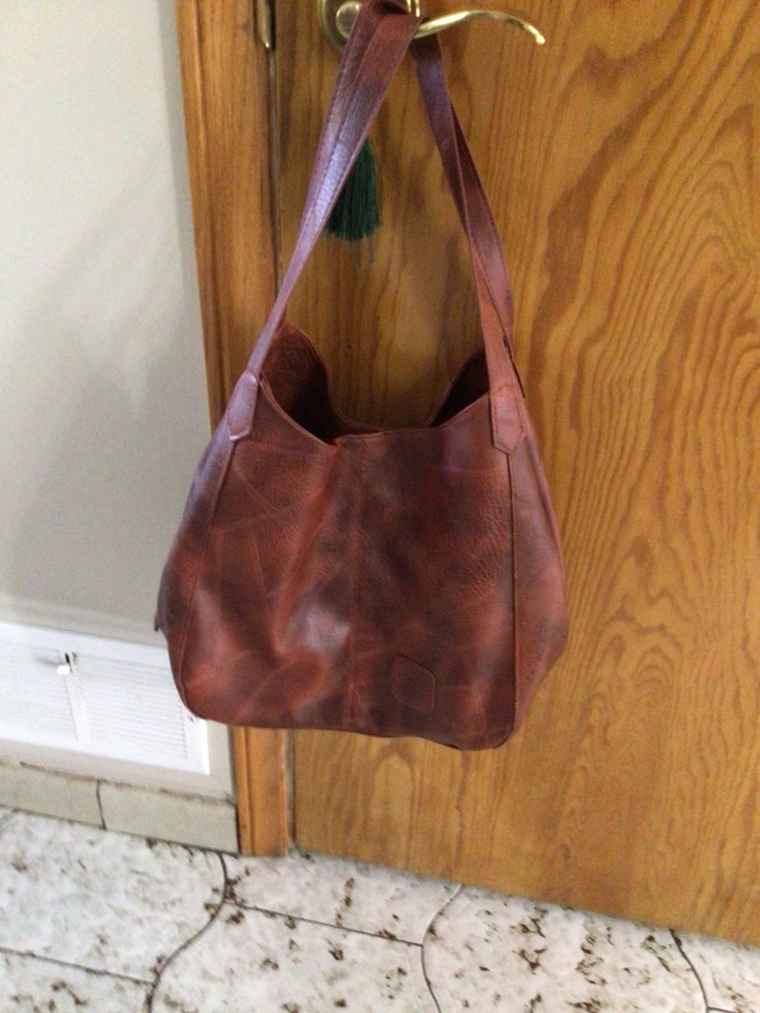 Selling a JL HOPET brown leather hobo bag. It's in great condition and ready for a new owner! The bag features a stylish design and is perfect for everyday use. It has an interior zipper.