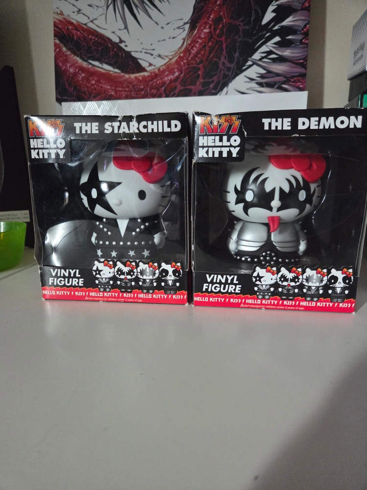 Selling two KISS Hello Kitty vinyl figures in their original boxes! You'll get The Starchild and The Demon. Great for collectors!