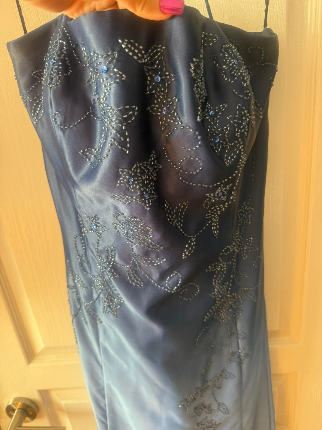 Selling a beautiful Jessica evening dress in size 16. The dress is a lovely shade of blue and features delicate beading. It's made of 100% acetate lining/doublure. Perfect for a special occasion!