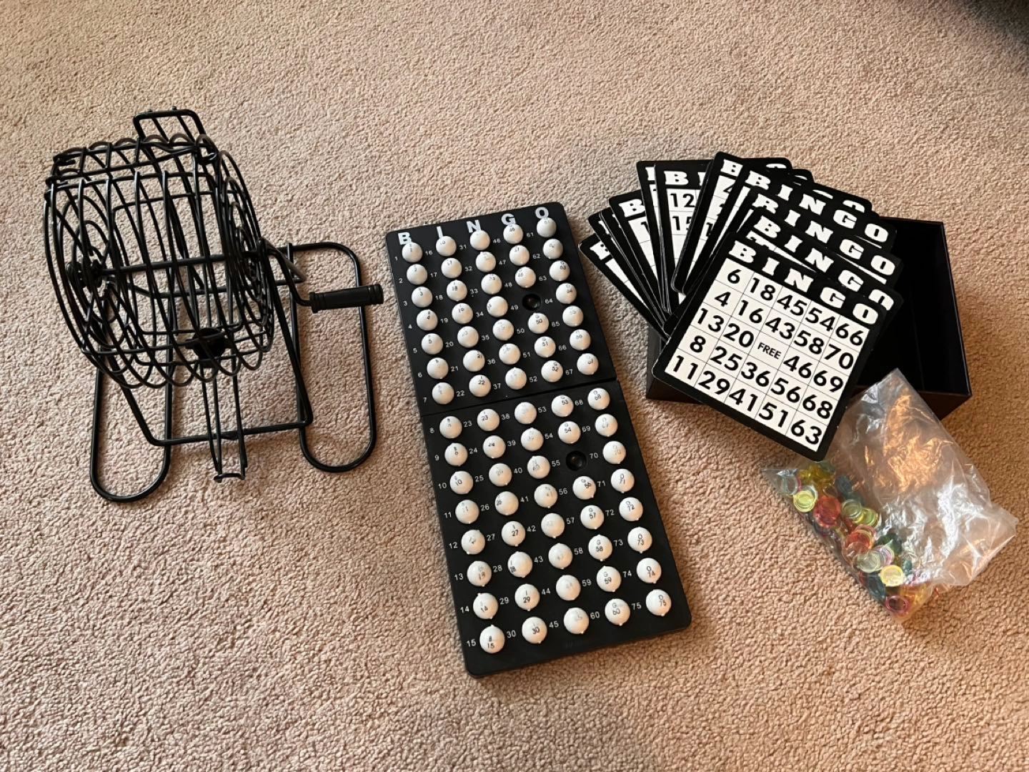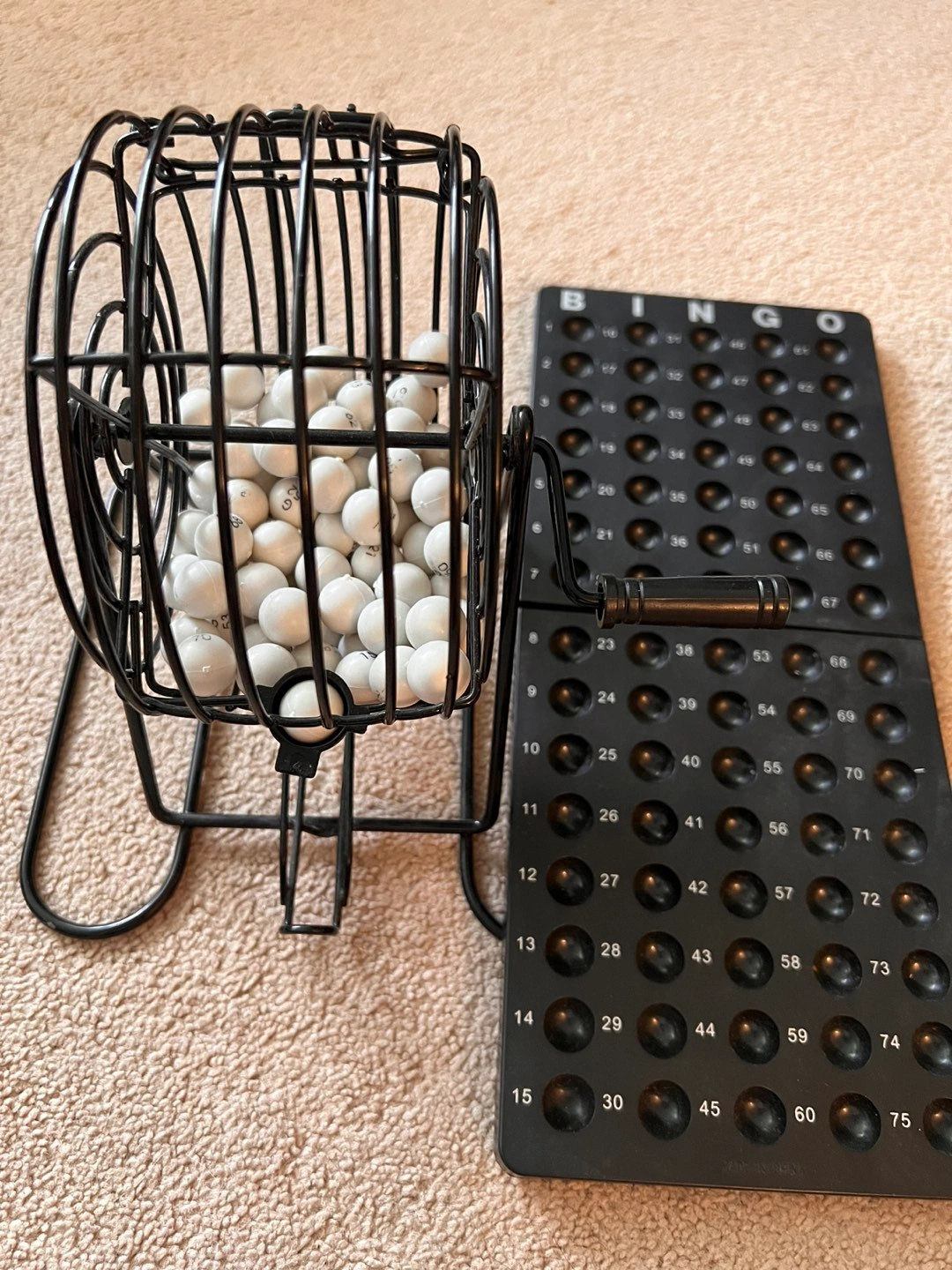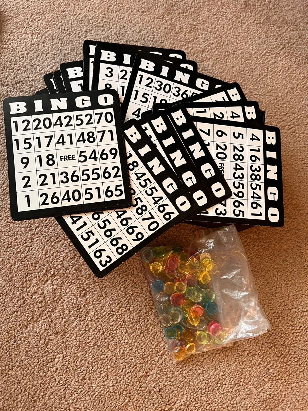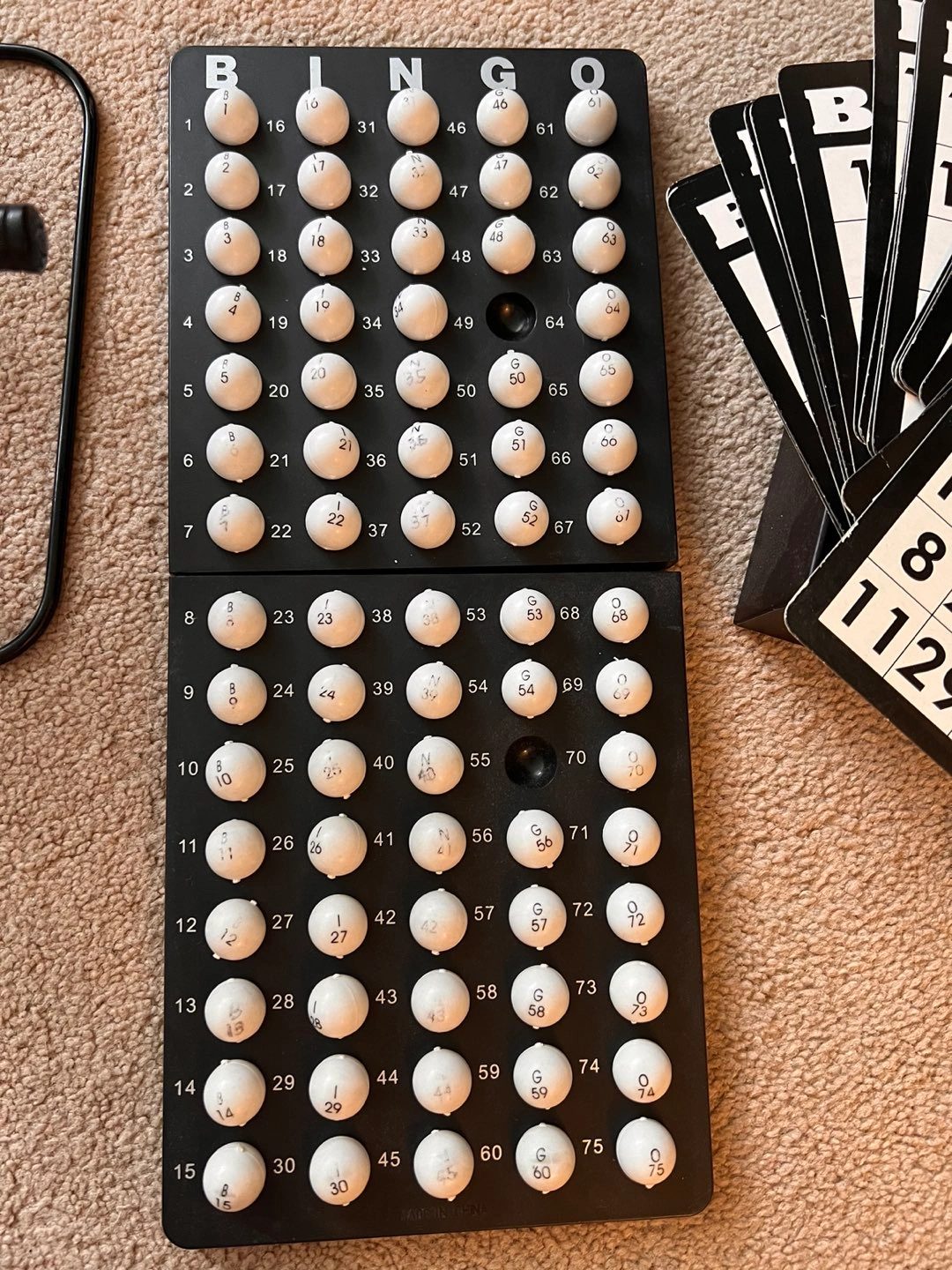 Free Bingo Game Set with 16 Bingo Cards and ++ Colored Chips and Bingo Balls but with missing two number balls. My kids have overgrown playing with it.