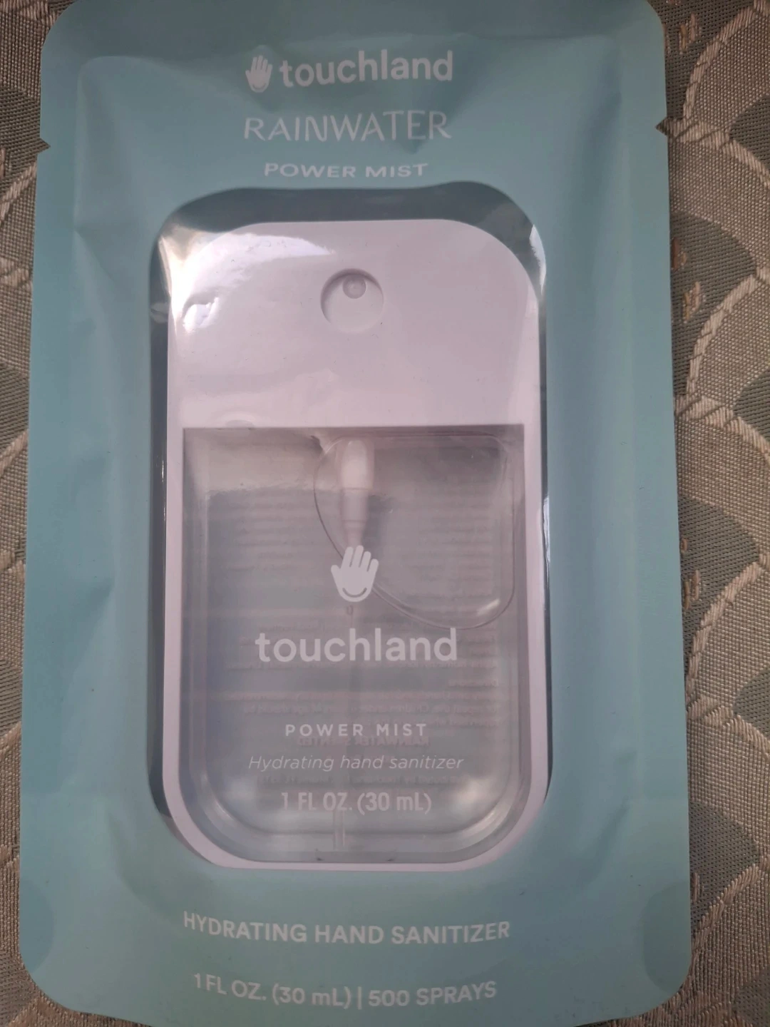 I'm selling a brand new Touchland Rainwater Power Mist hydrating hand sanitizer. It contains 1 fl oz (30 ml) and provides 500 sprays. Keep your hands clean and moisturized with this convenient mist!