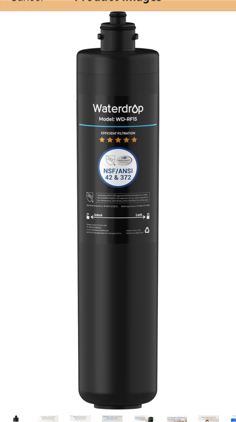 Waterdrop RF15 Replacement Filter Cartridge for 15UA/15UB/15UC Under Sink Water Filter, Reduces Lead, Chlorine, Bad Taste & Odor, NSF/ANSI 42 Certified, 19K Gallons High Capacity Serious buyers only please