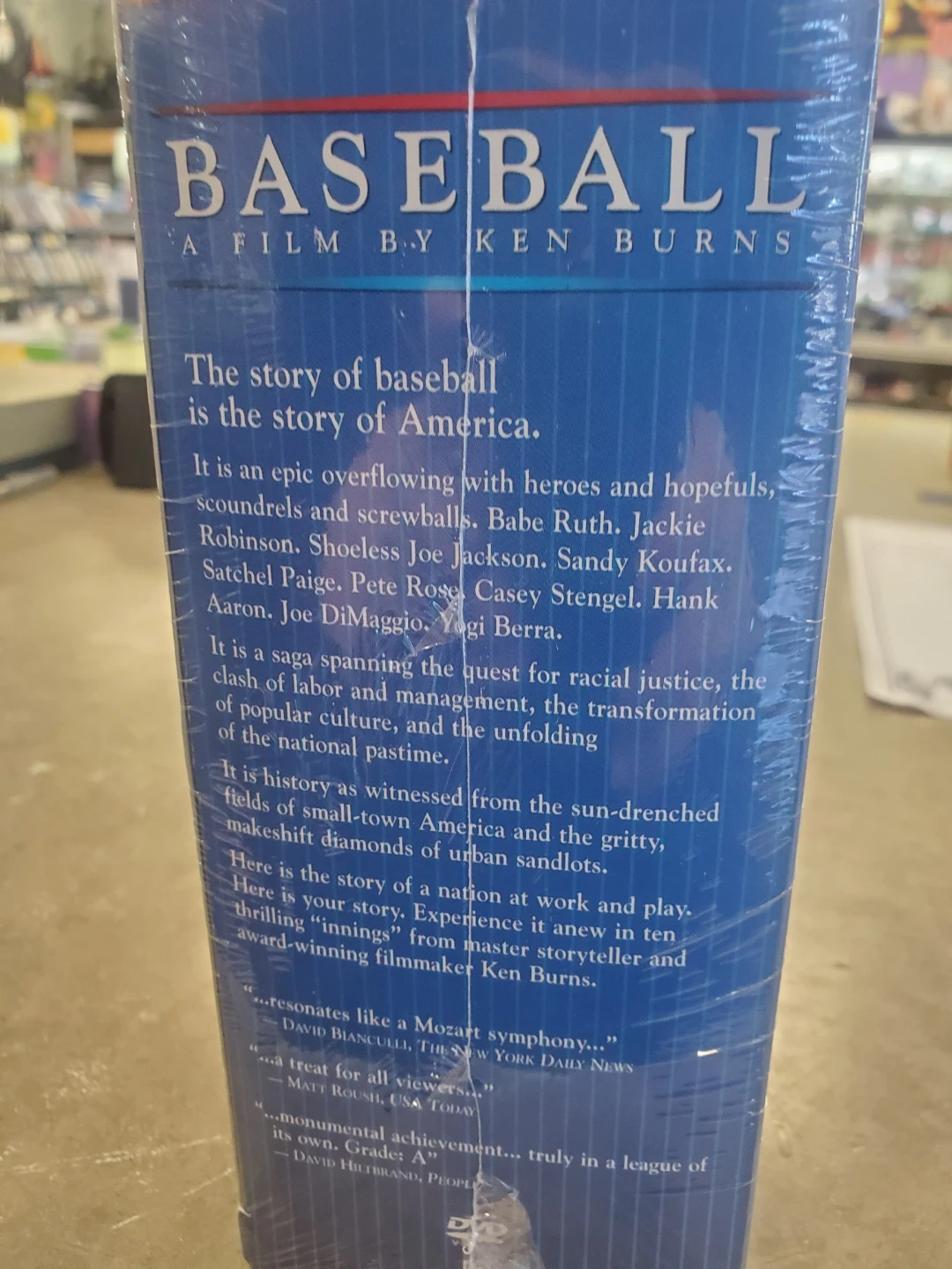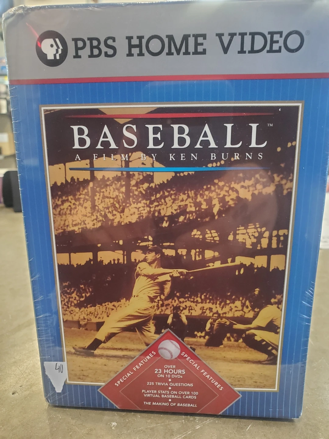Selling a sealed copy of Baseball: A Film by Ken Burns on PBS Home Video! It includes special features like over 23 hours of content, 225 trivia questions, and player stats on over 100 virtual baseball cards