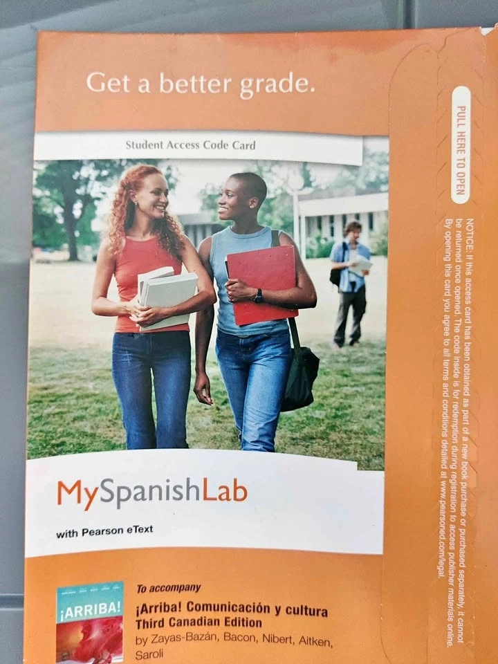 Buy & SellMySpanish Lab online access textbook and activitiesMySpanish Lab online access textbook and activities$16Unused Spanish online textbook with activities. Was recommended for SPAN-1001H at Trent university.WHERE TO MEETCheck LocationView MapSELLERCalvinSir Sandford Fleming150 reviews0 chats·0 favorites·1 viewsSEND CHAT TO SELLERHi Calvin! I’m interested in your listing.Hi Calvin! I’m interested in your listing.Get the Karrot app to chatSign In to chat