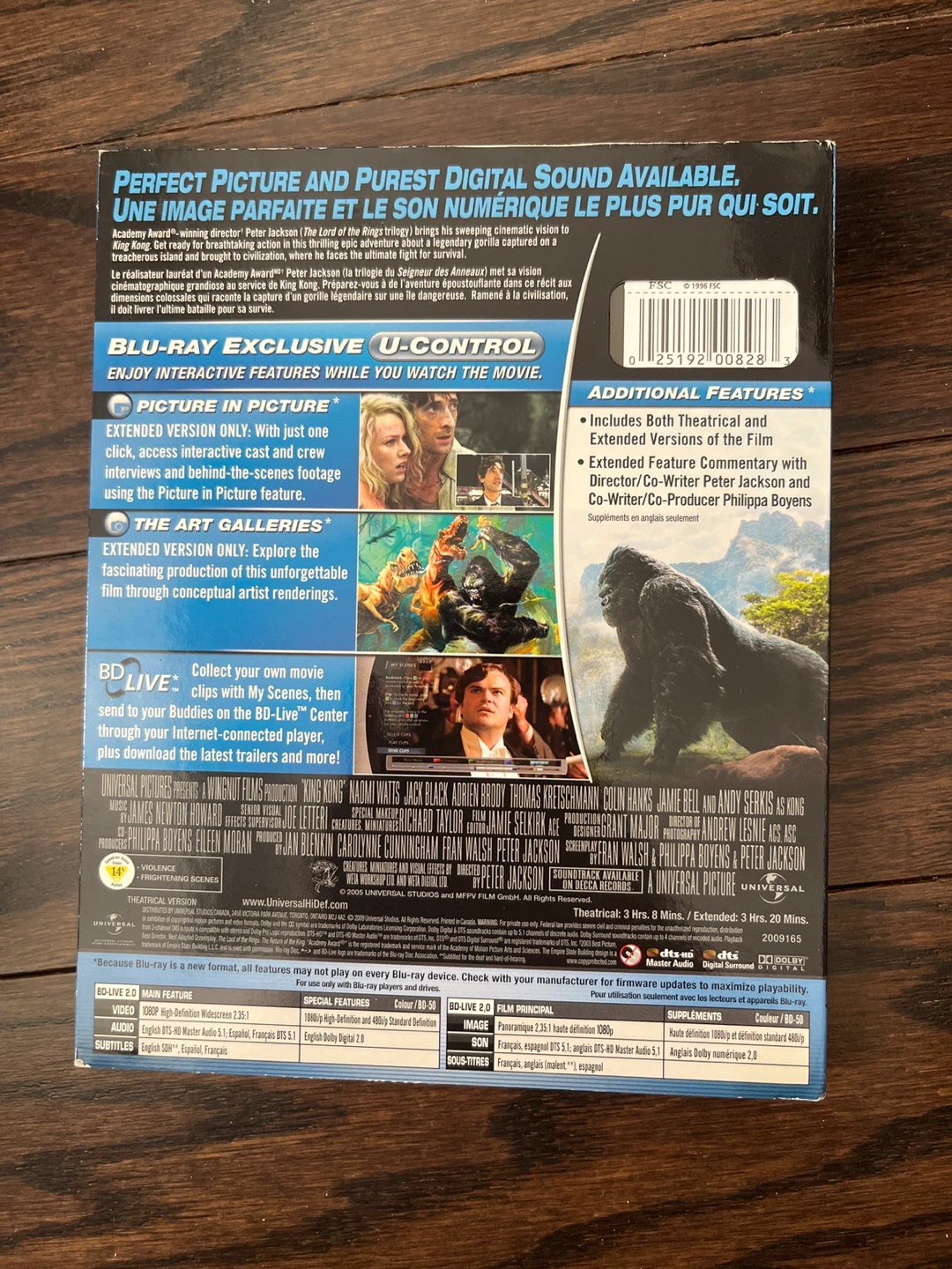 Selling a Blu-ray disc of King Kong! This includes both theatrical and extended versions of the film. Also includes extended feature commentary with Director/Co-Writer Peter Jackson and Co-Writer/Producer Philippa Boyens.