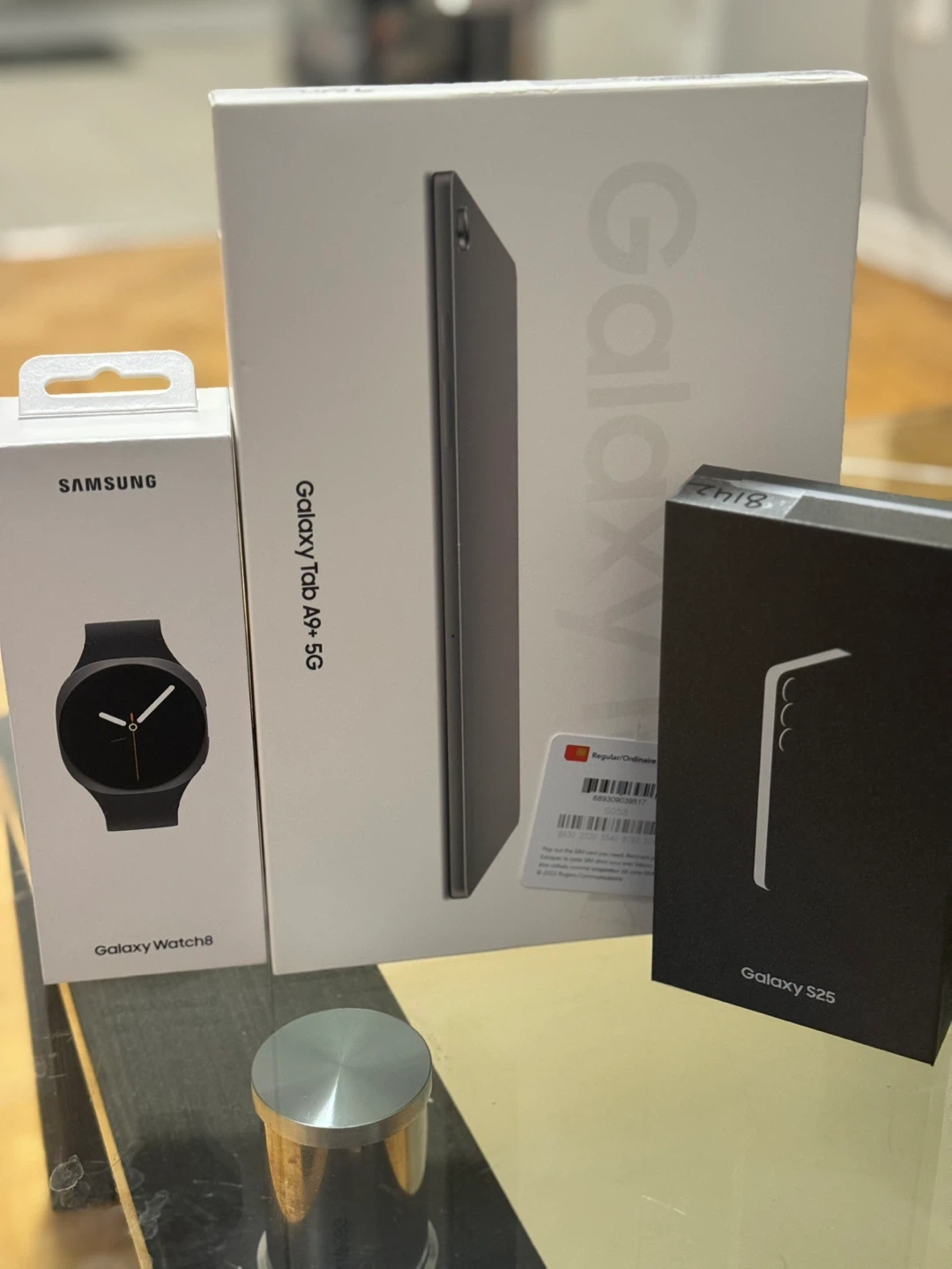 Selling a brand new Samsung Galaxy Watch 8 ,Samsung s25, and Samsung tab a9+ 5Gin its original box! Never been used.