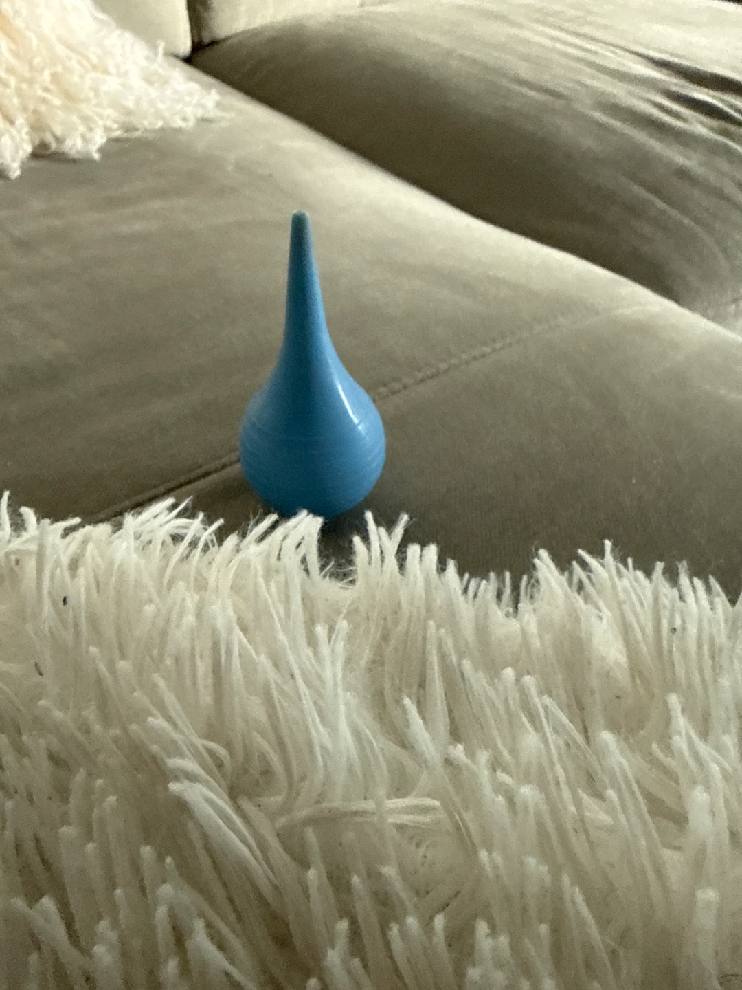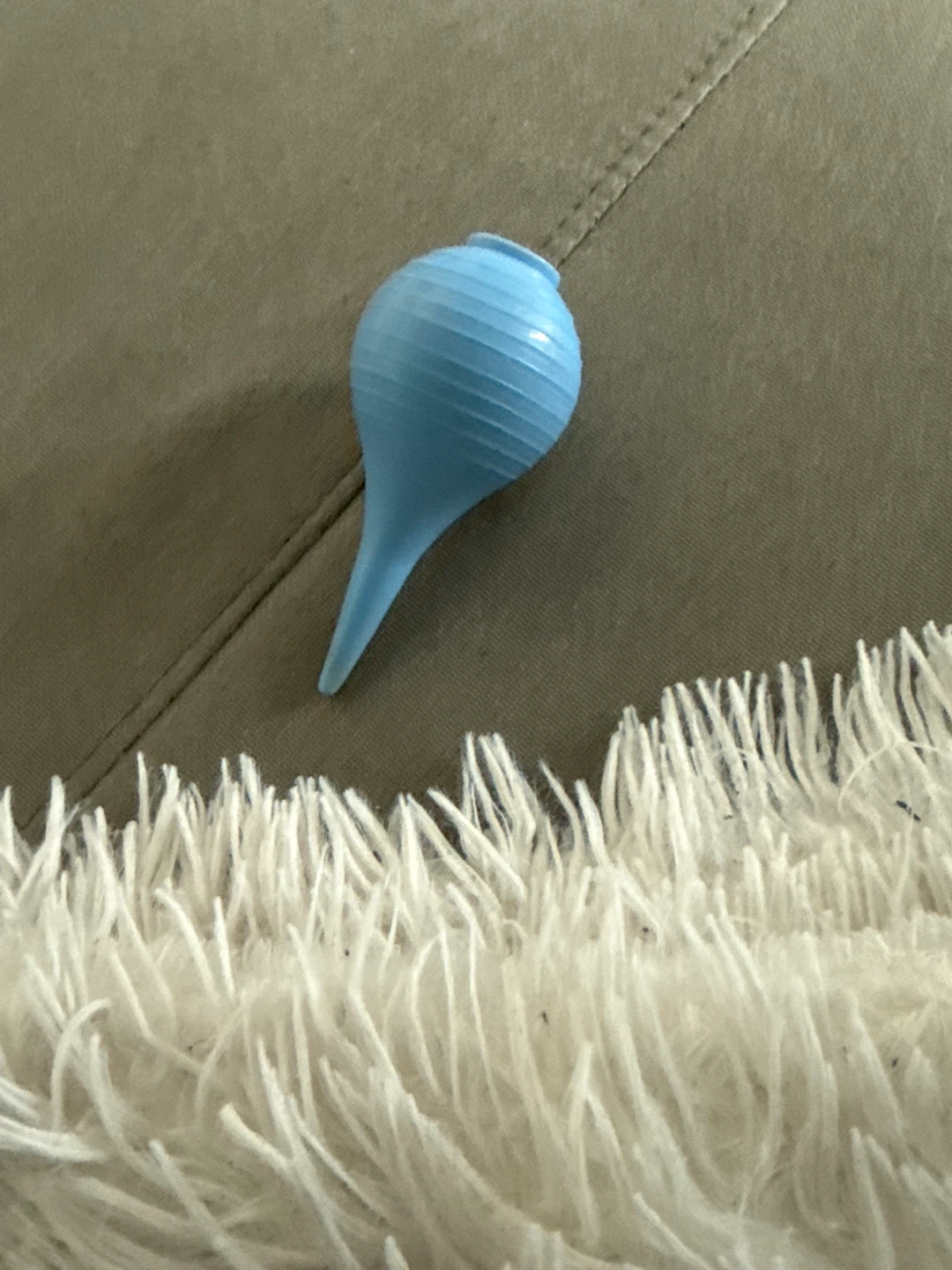 Selling a blue nasal aspirator bulb syringe for baby care. It's in great condition and ready to help clear your little one's nasal passages. Perfect for keeping your baby comfortable! This can also be used as a eardrop cleaner to put olive oil or any oil of your choice into the nasal part of your ear to let the debris come up naturally and clean your ear without Q-tips.