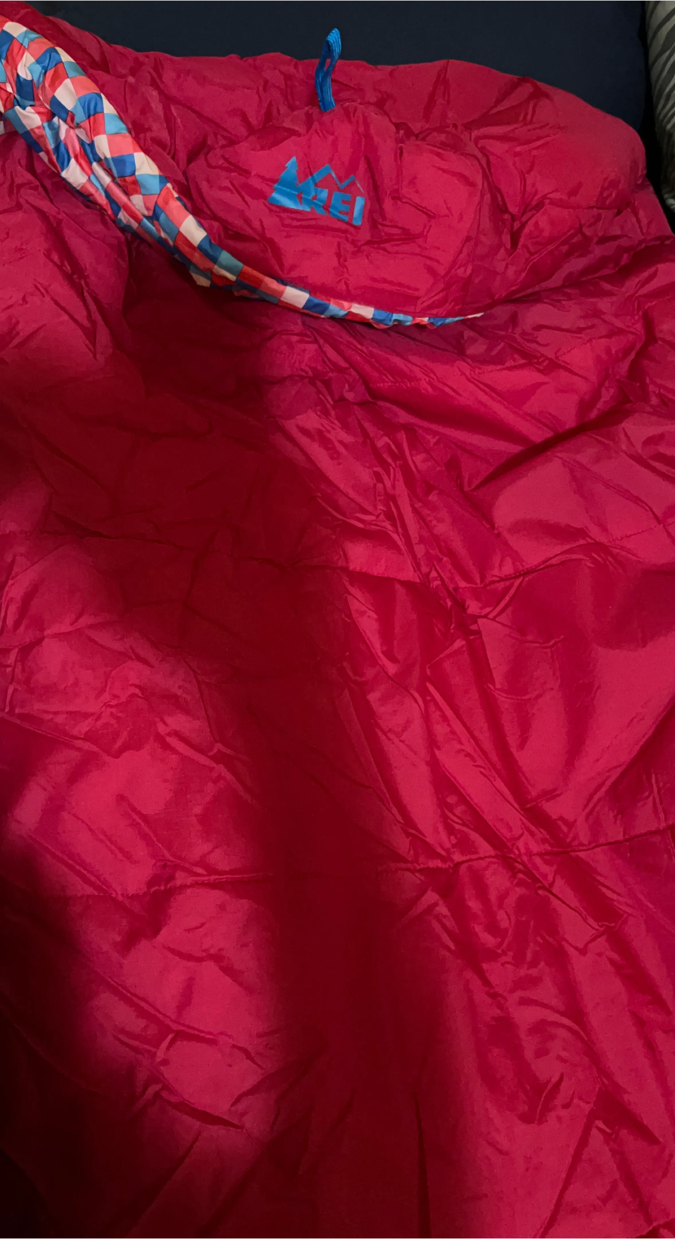 Selling a red REI Co-op sleeping bag! It's in good condition and ready for your next camping trip. Perfect for staying warm on those chilly nights under the stars