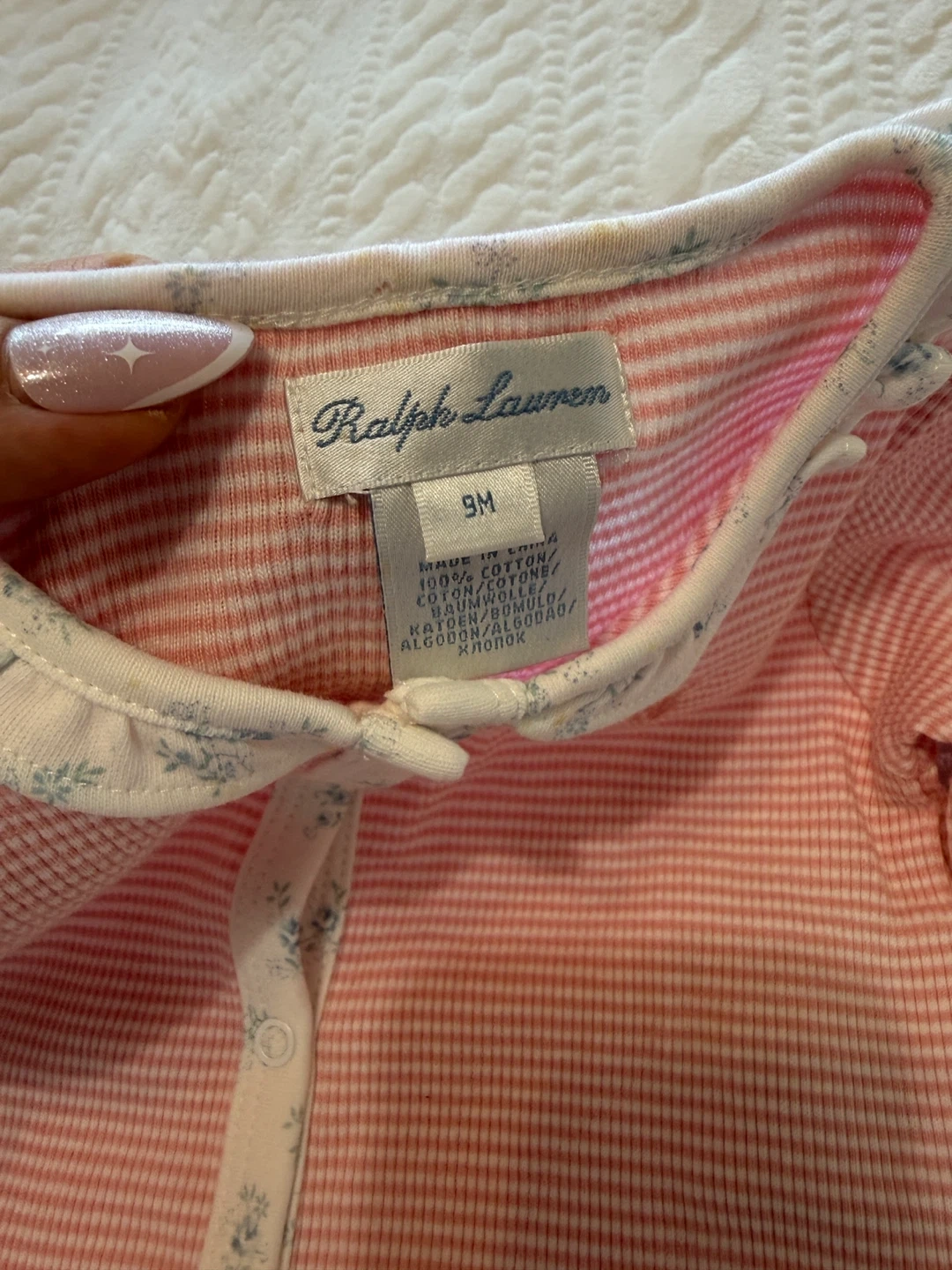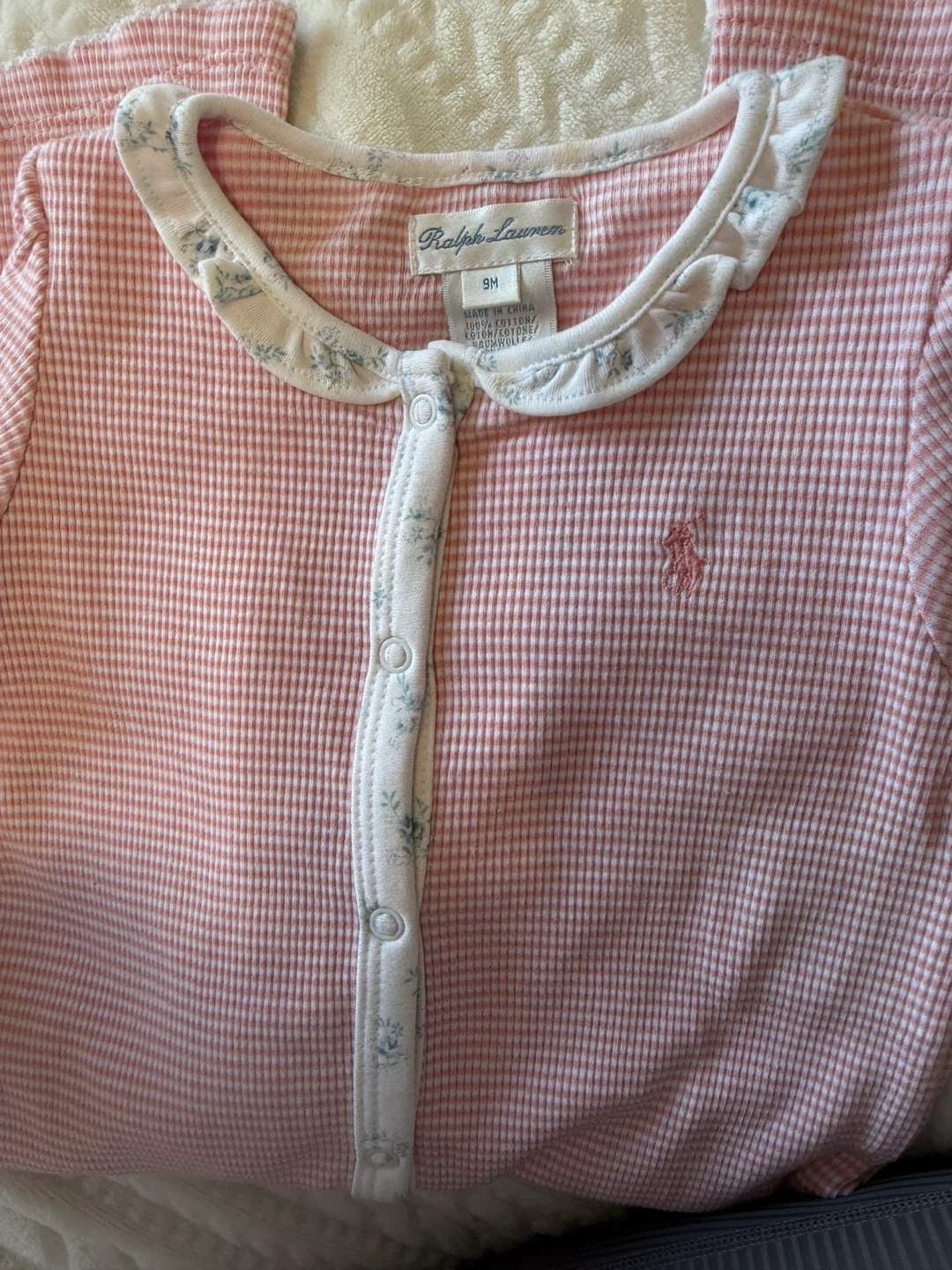 Ralph Lauren 9M Baby Romper - Pink & White