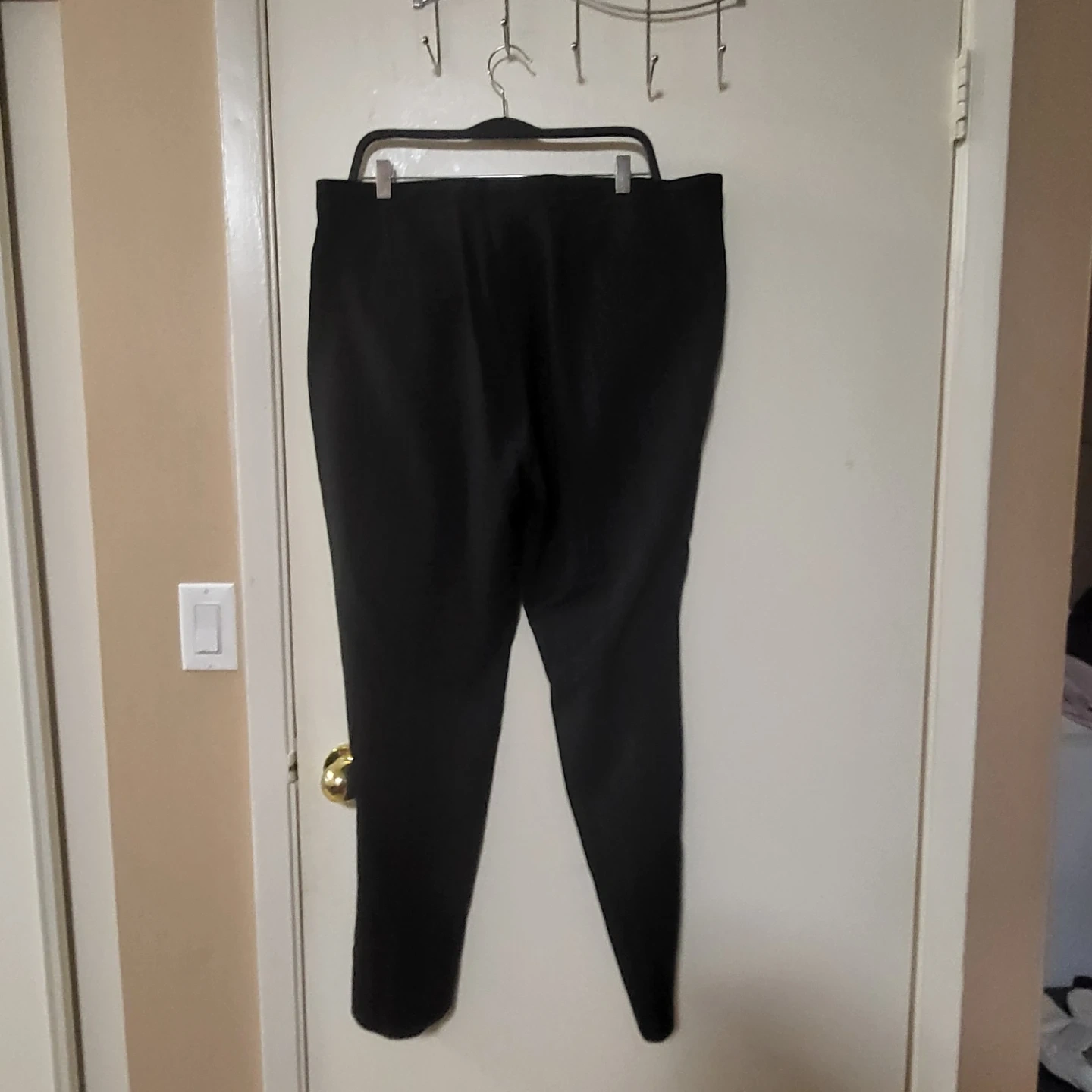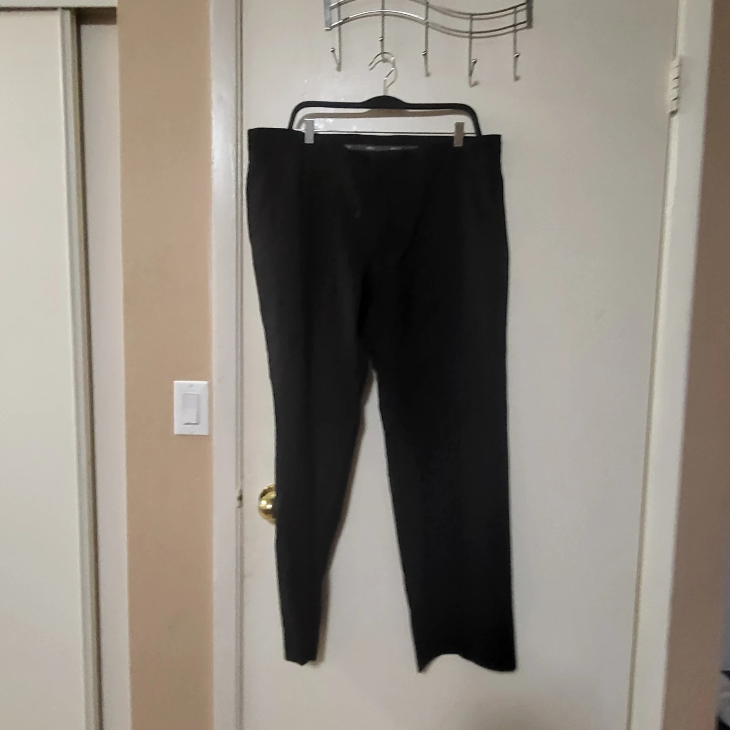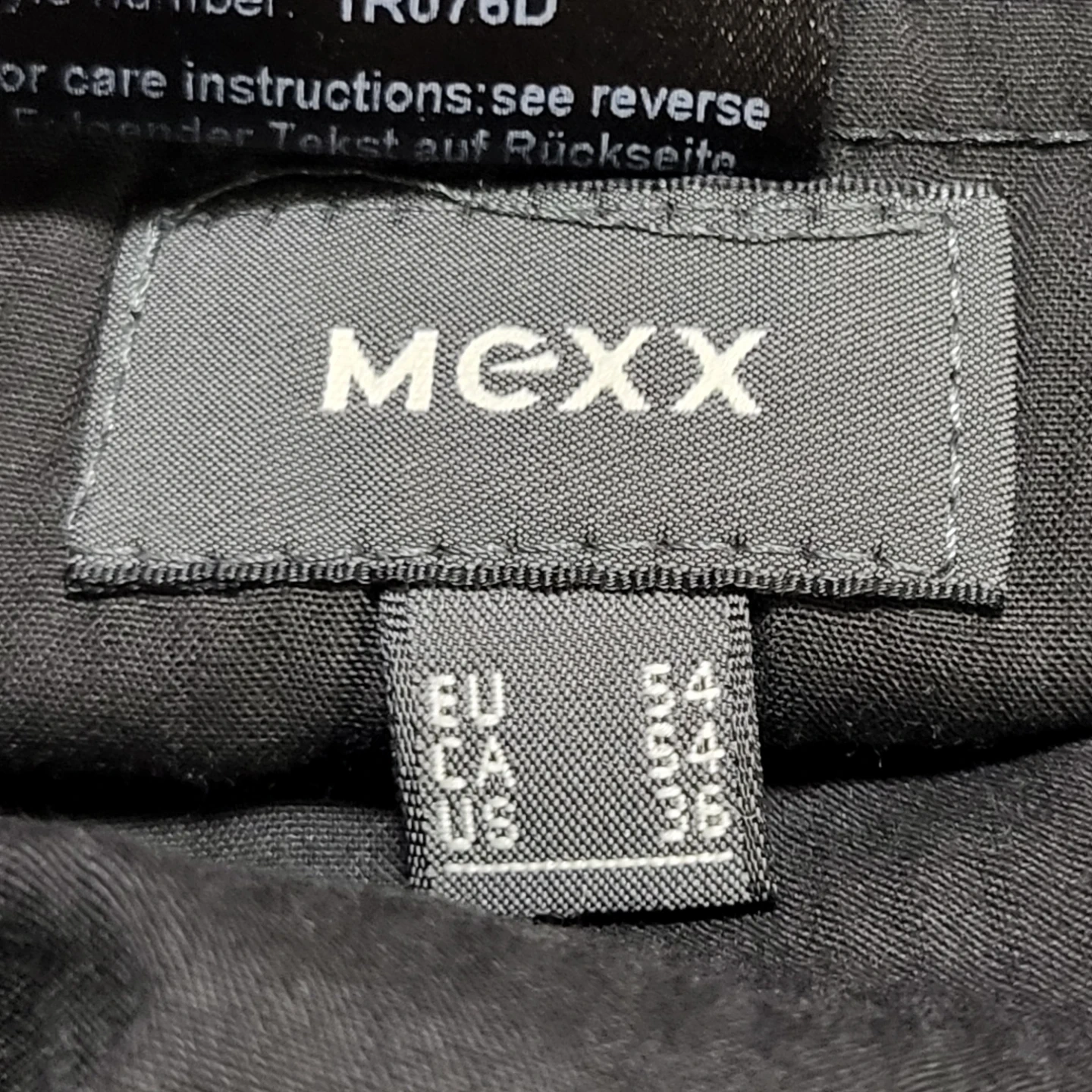 Selling a pair of MEXX dress pants in black. They are size US 36. The material is 98% polyester and 2% elastane.