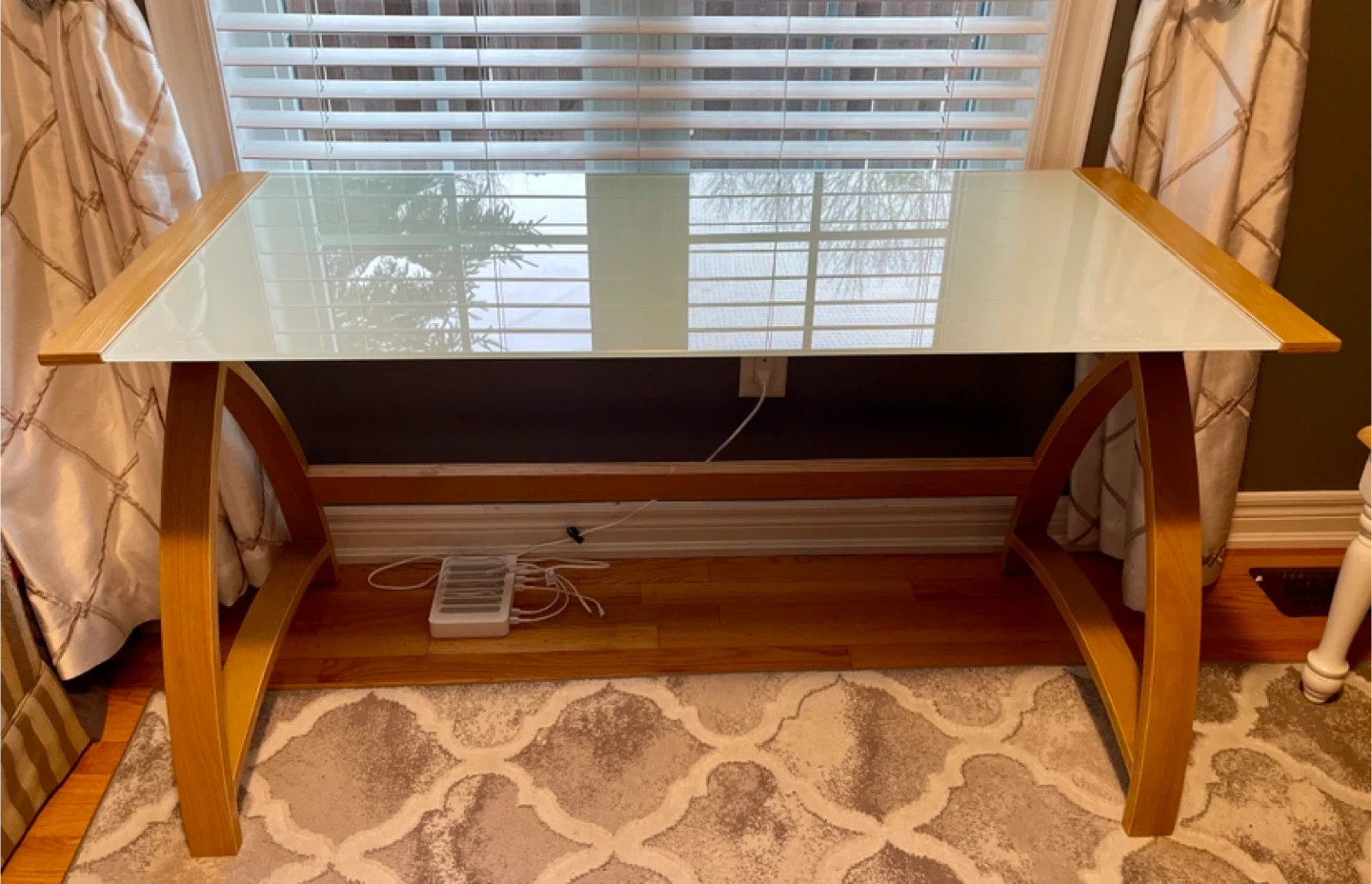 Glass Top Desk with Wood Frame