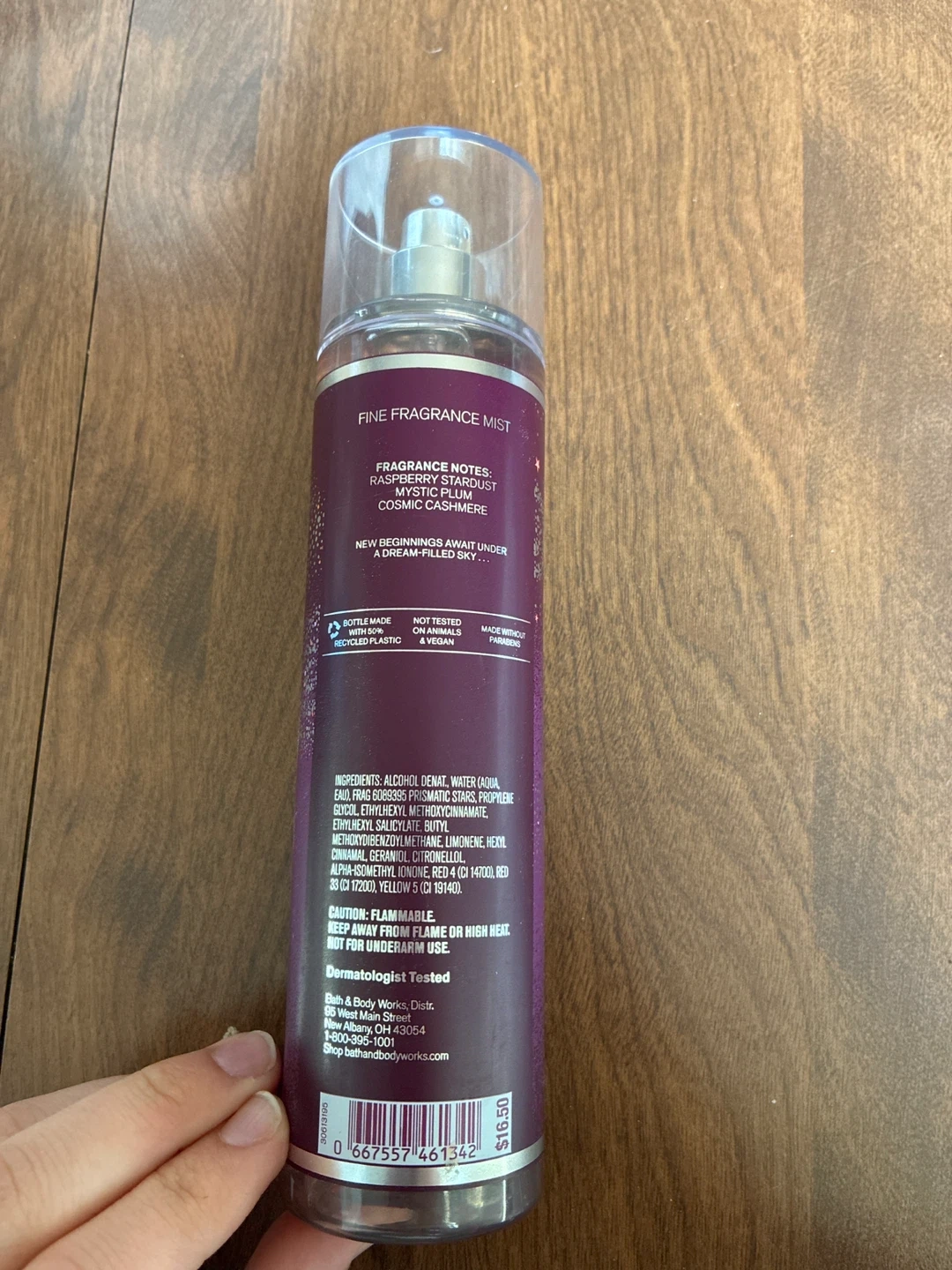 Selling a Bath & Body Works Fine Fragrance Mist in the Prismatic Stars scent! It's an 8 fl oz / 236 ml bottle. The fragrance notes include raspberry stardust, mystic plum, and cosmic cashmere. Perfect for adding a touch of sparkle to your day
