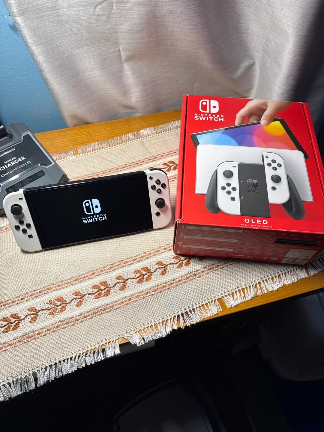 Selling a Nintendo Switch OLED model with the white Joy-Cons! It comes with the original box and all included components. Extras included Bluetooth GameCube controller, extra Joy-Cond. It's in great condition and ready for a new owner to enjoy some gaming! Includes 250 GB microSD card