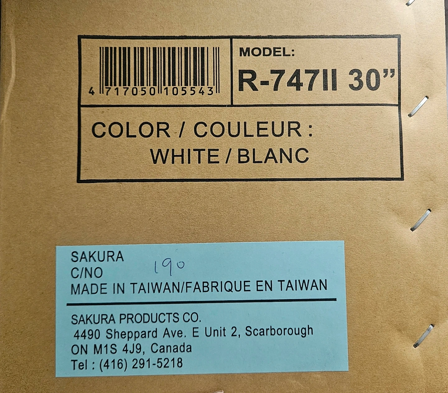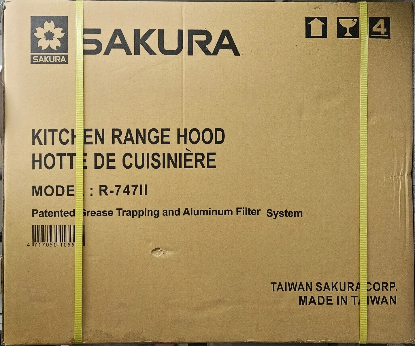 Selling a Sakura kitchen range hood, model R-747II, 30-inch size. It's white and comes in the original box. This range hood features a patented grease trapping and aluminum filter system to keep your kitchen clean and fresh!