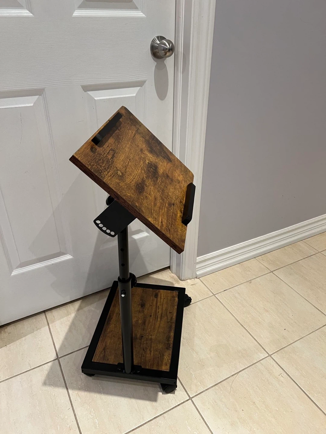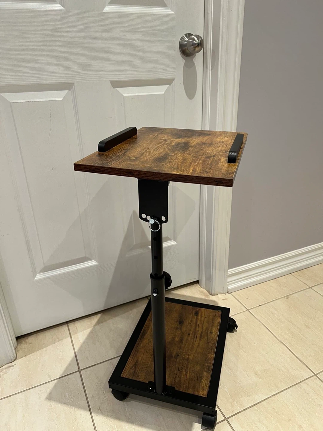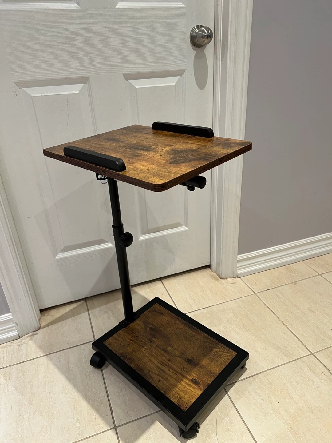 Selling an adjustable height rolling laptop desk! It's in great shape and ready for a new workspace. Perfect for working from home or adding a flexible workstation to any room
