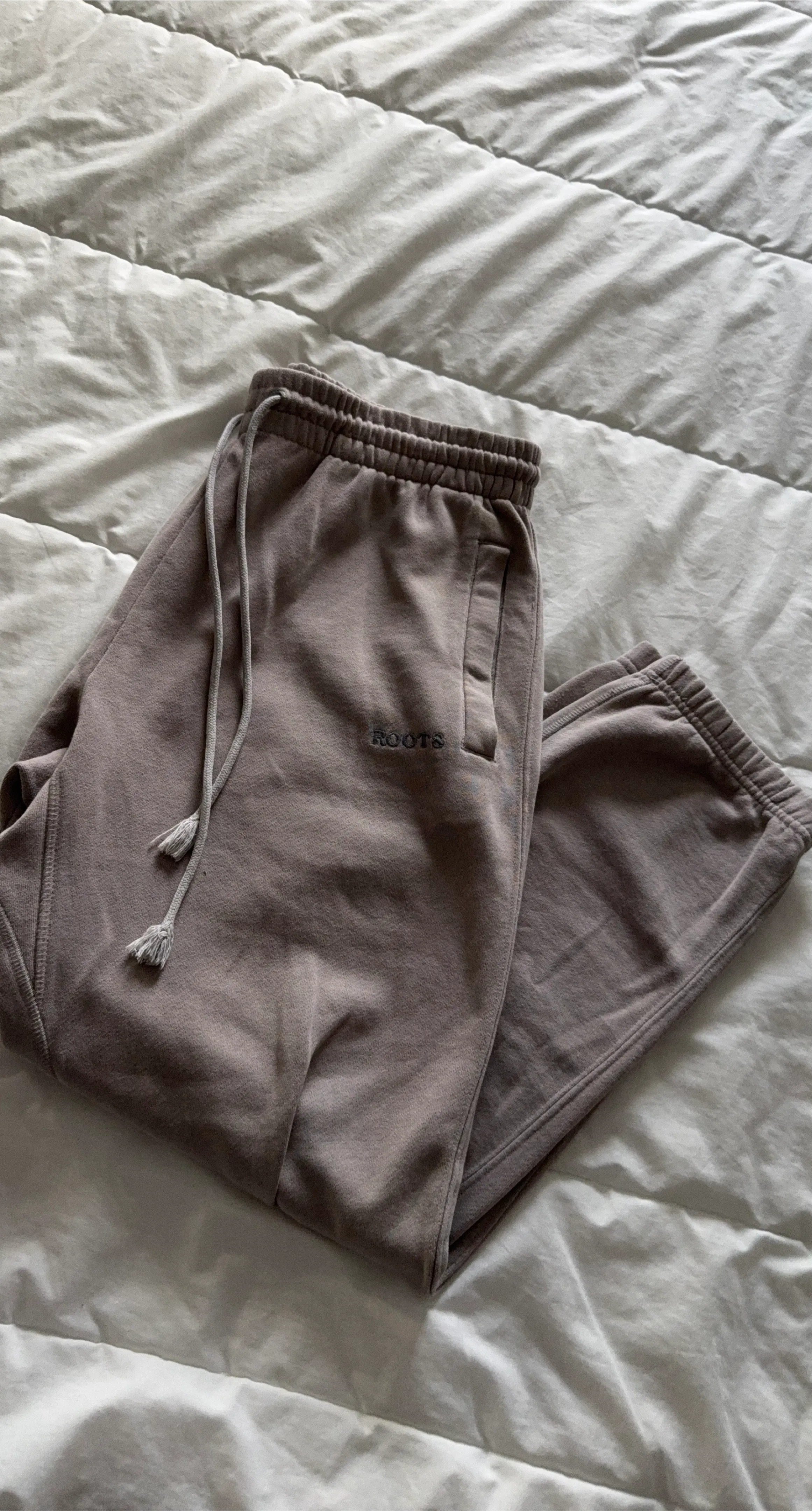 Selling a pair of Roots sweatpants in size 4. They're in great condition and super comfy! Perfect for lounging around the house or running errands.