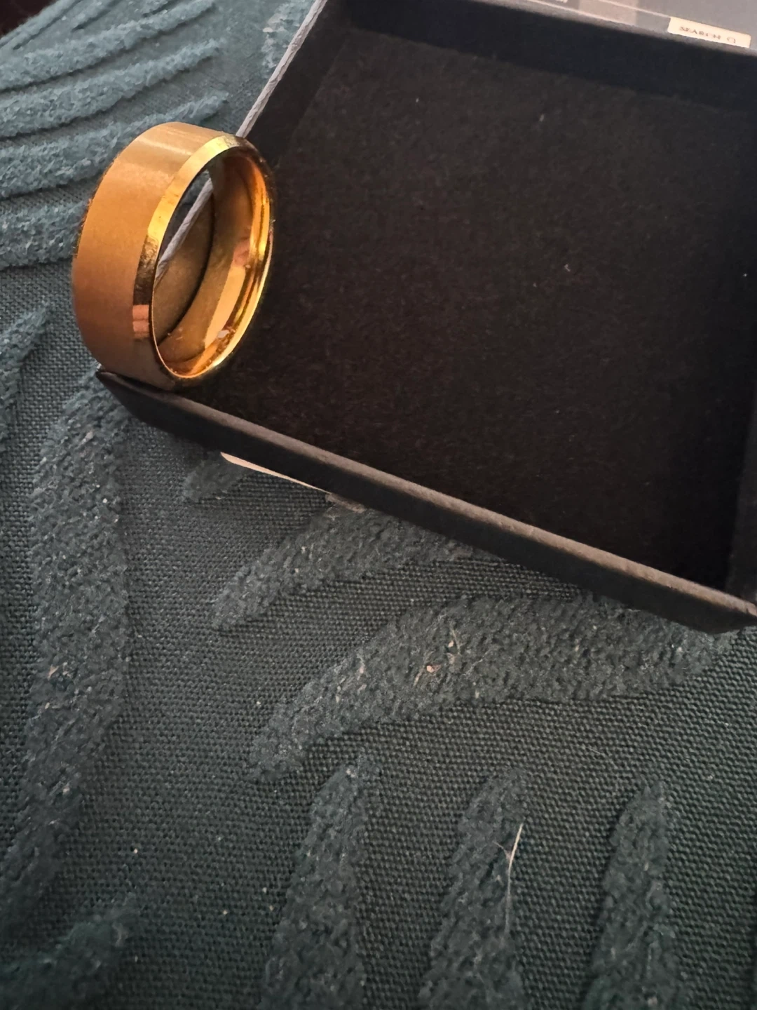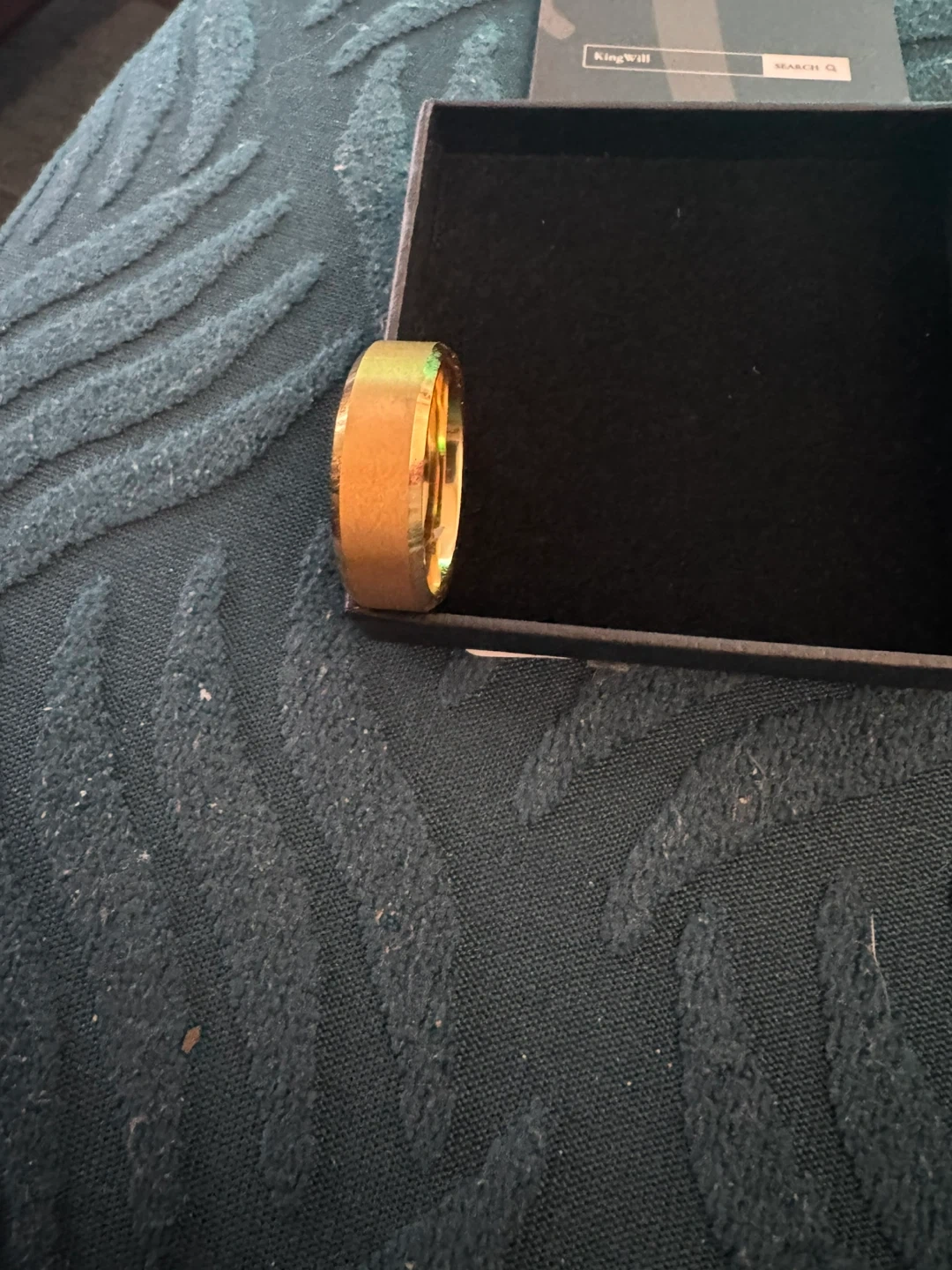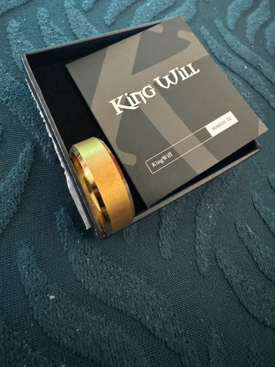 Selling a King Will ring made of tungsten carbide in gold colour. It comes with the original box. Feel free to message me if you're interested!beautiful gift