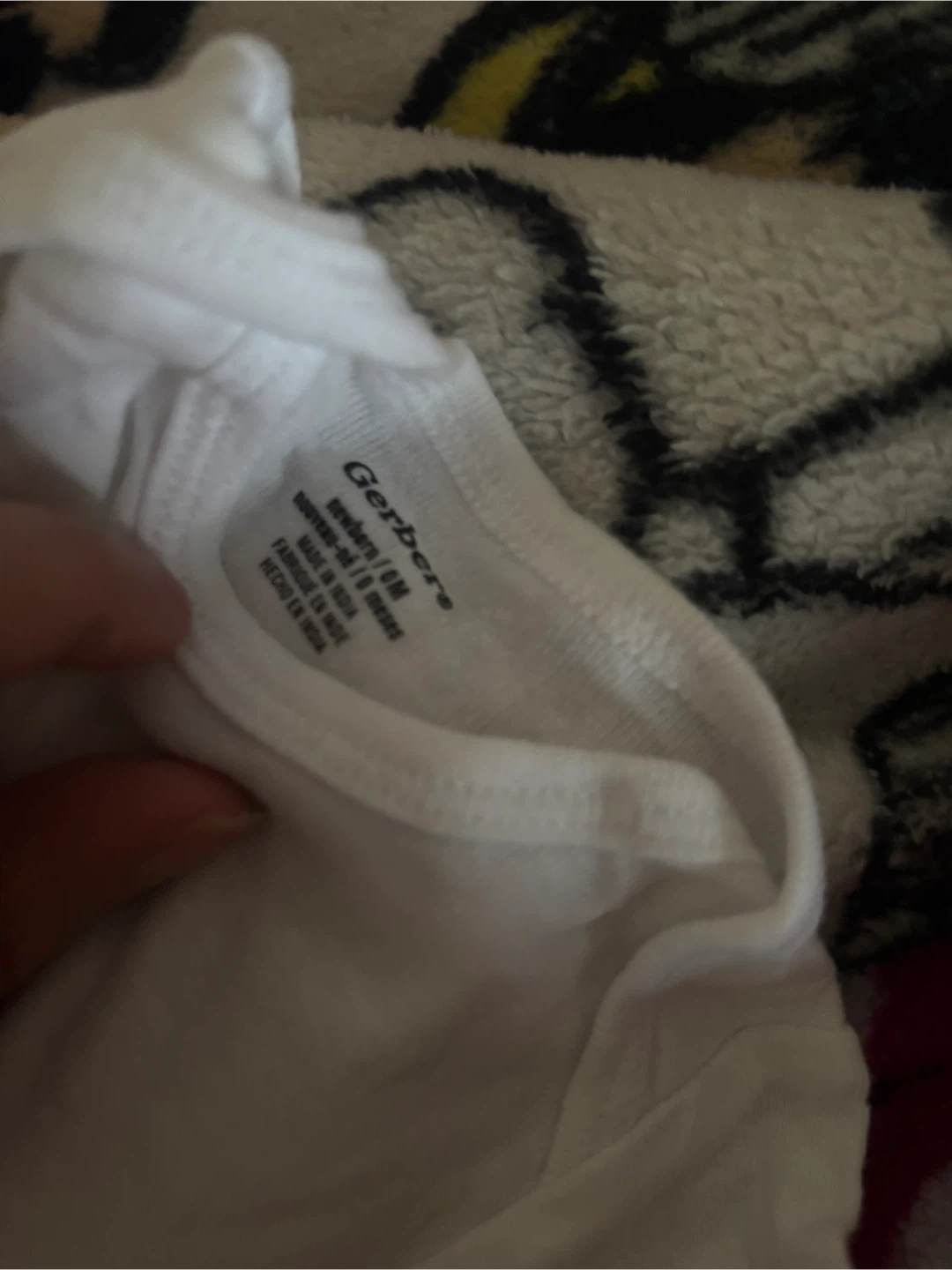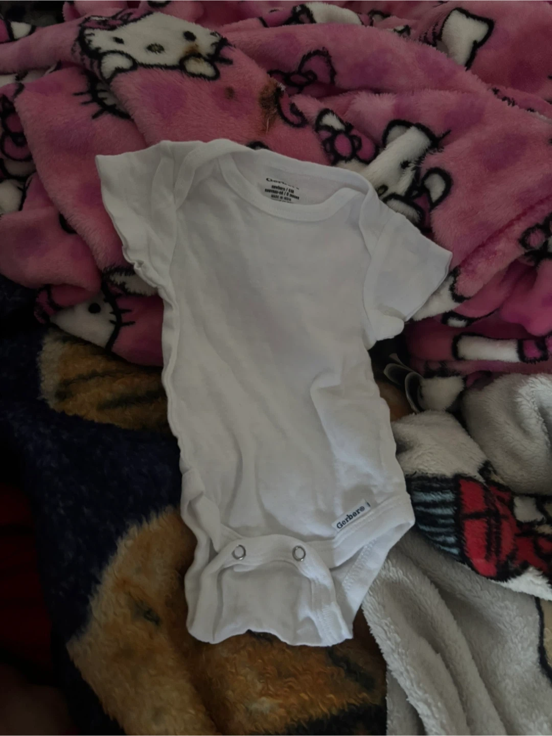 Selling a Gerber white onesie in newborn size (0-3 months). It's in good condition and ready for a new little one!