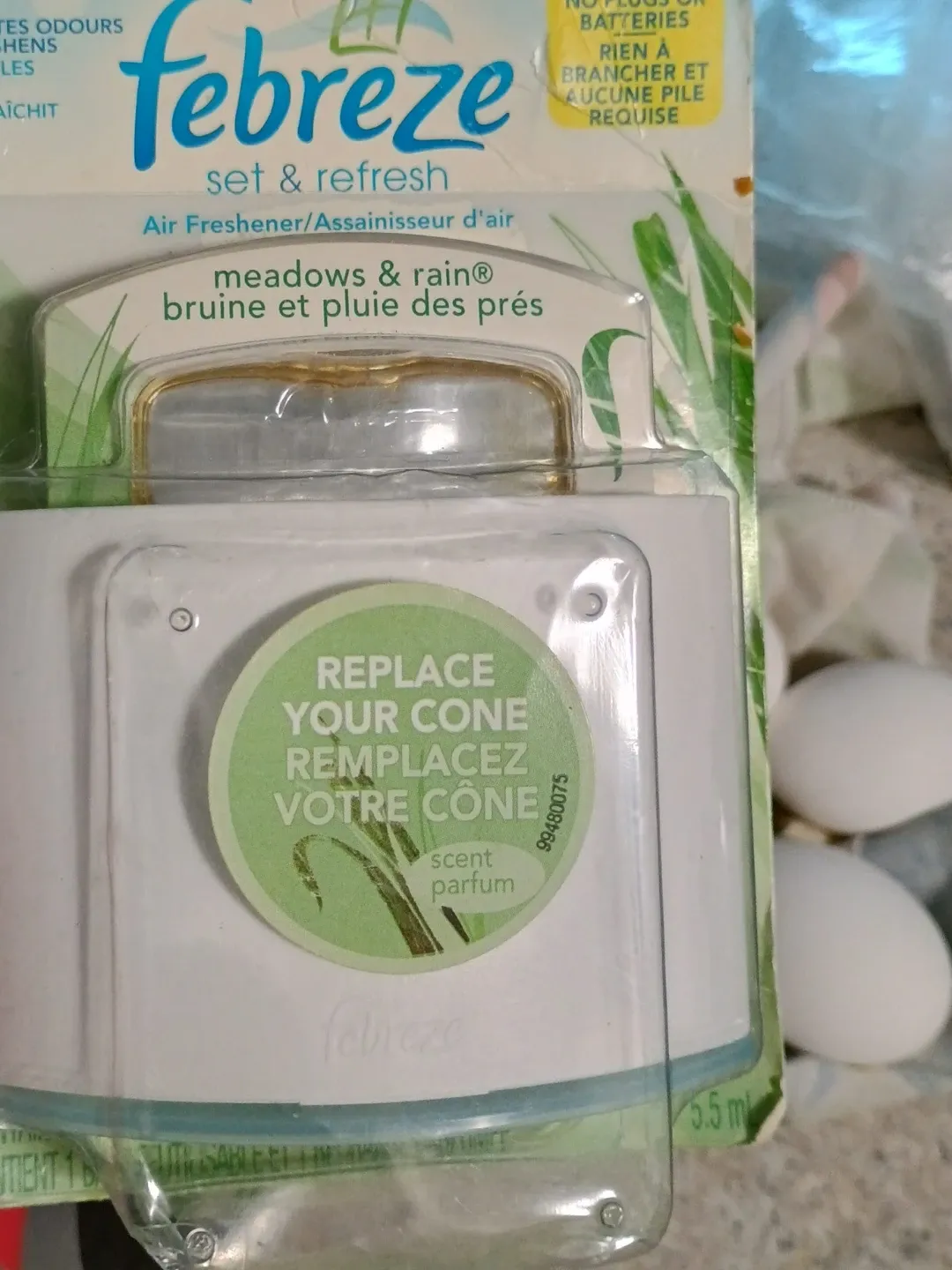 Freshen up your space with a Febreze Set & Refresh air freshener! This one has a Meadows & Rain scent, bringing a touch of the outdoors inside