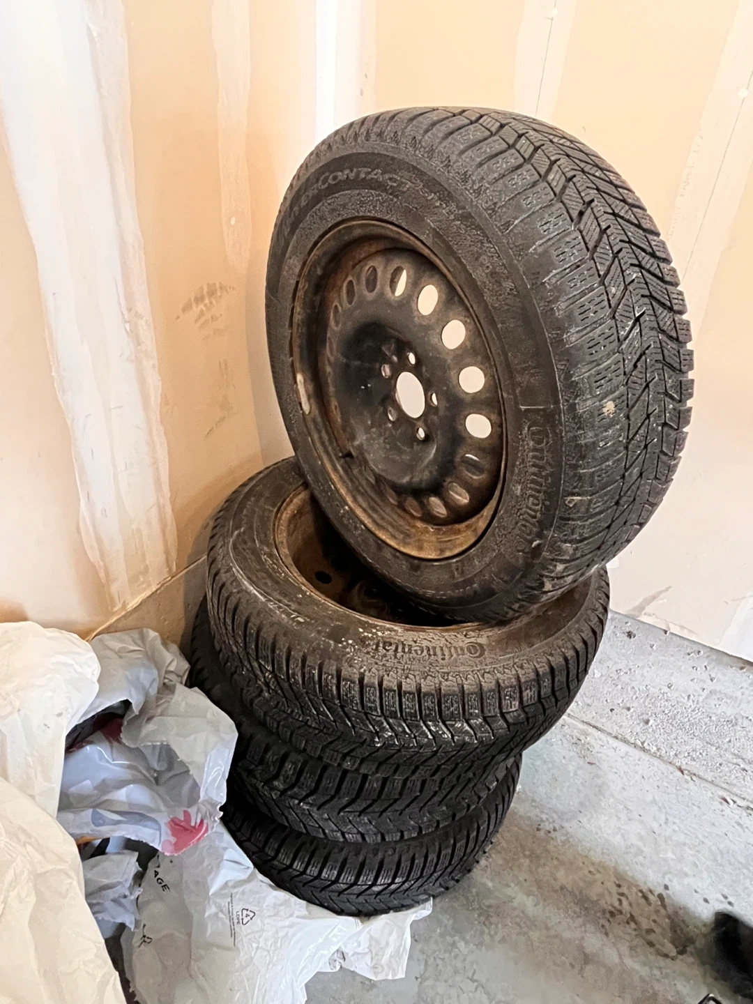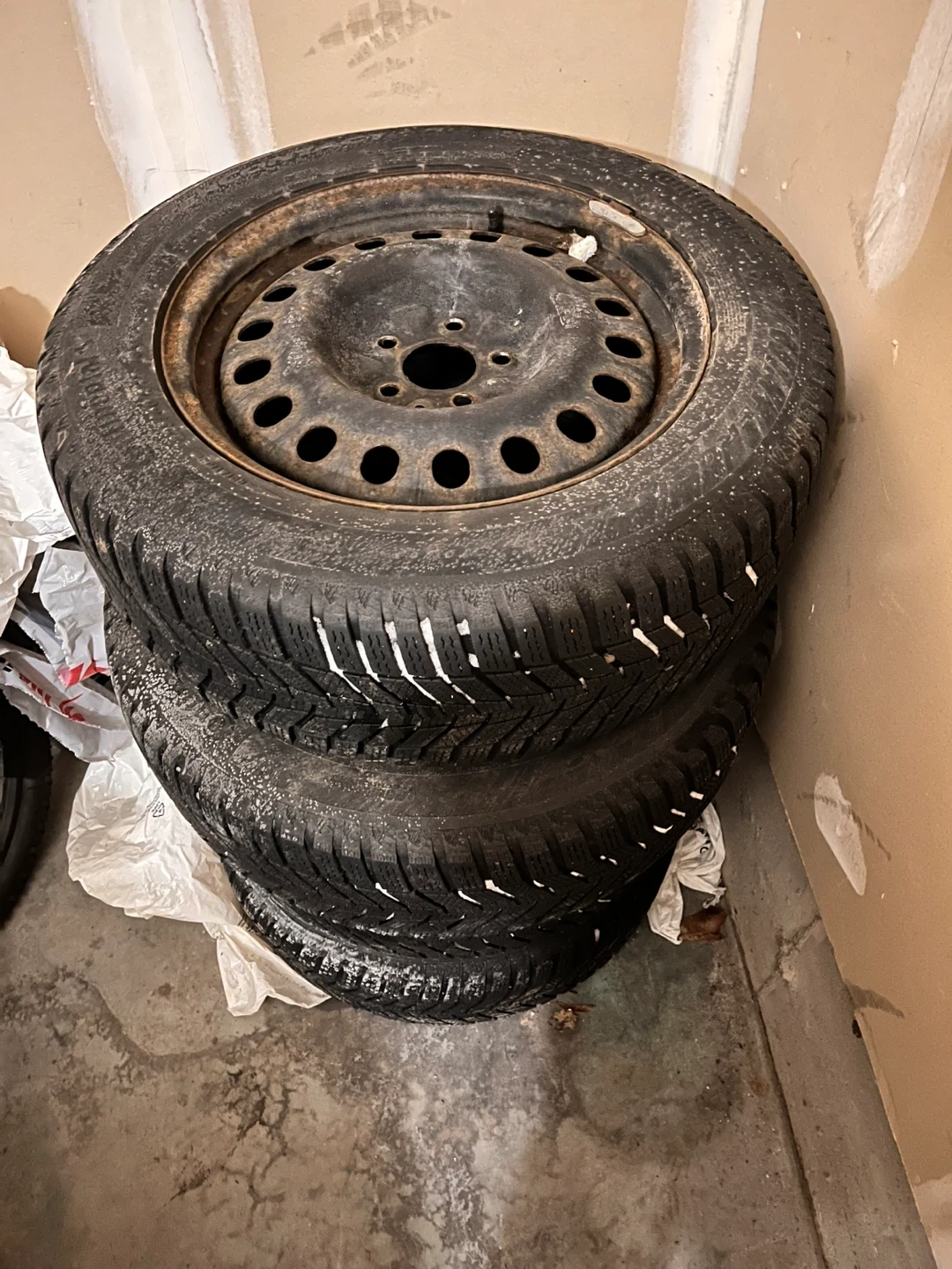 Selling a set of used winter tires. They show signs of wear and use, as you can see in the photos. Used rims for 3 season, tires used for 1 season