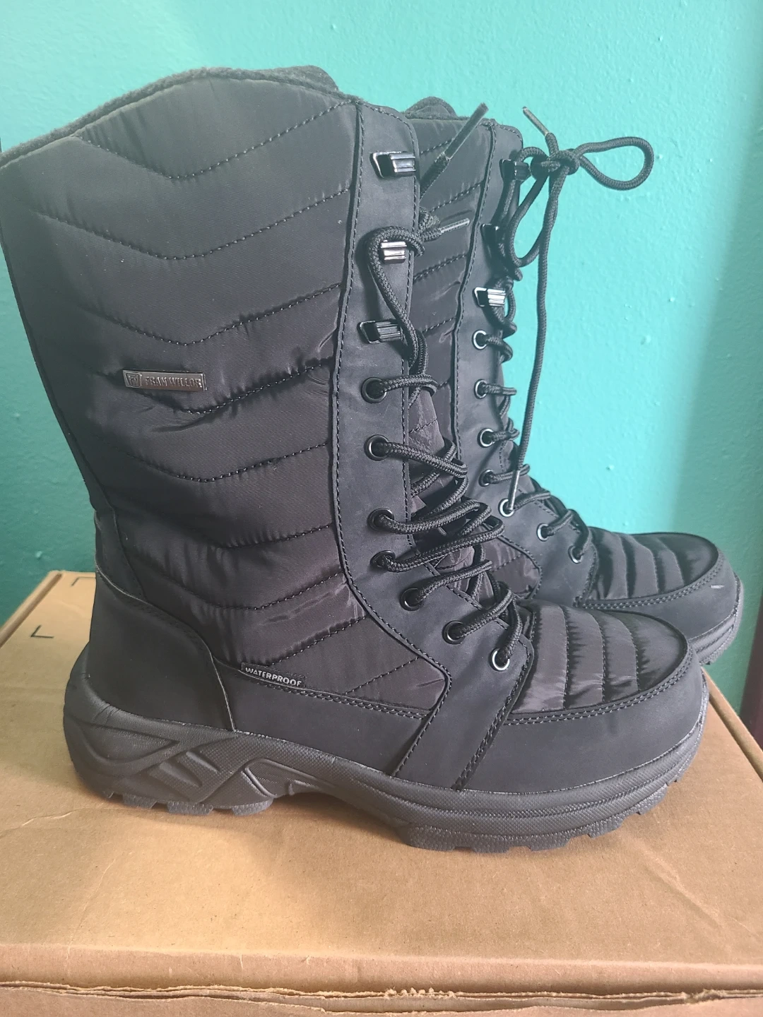 Fran Willor boots in black. These boots are new. waterproof and ready for the winter season!