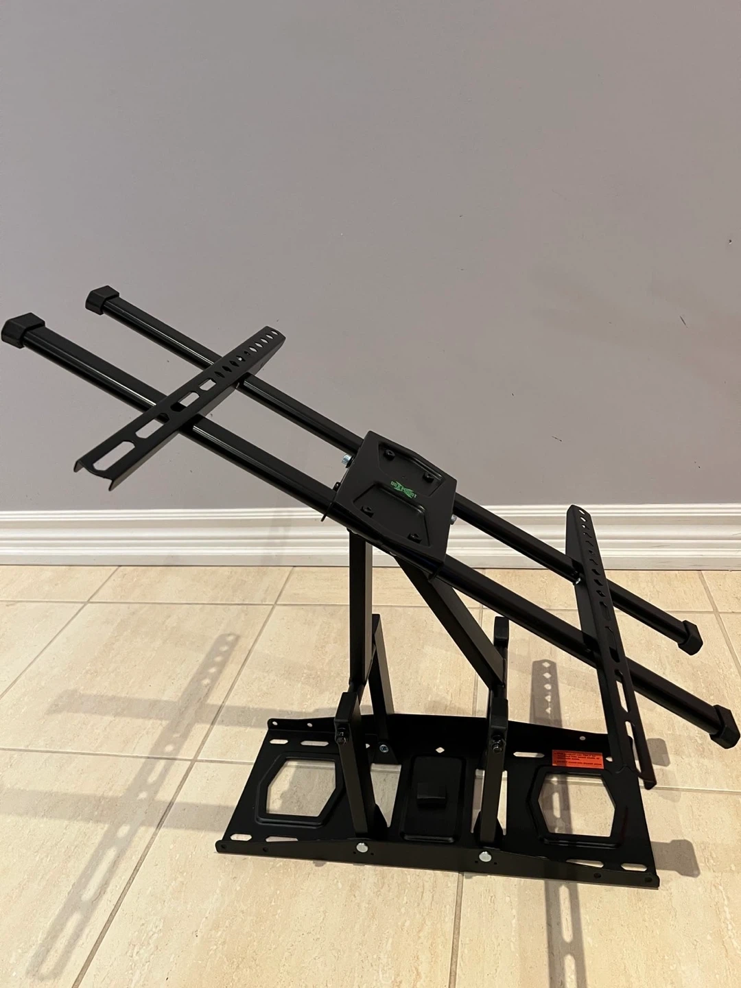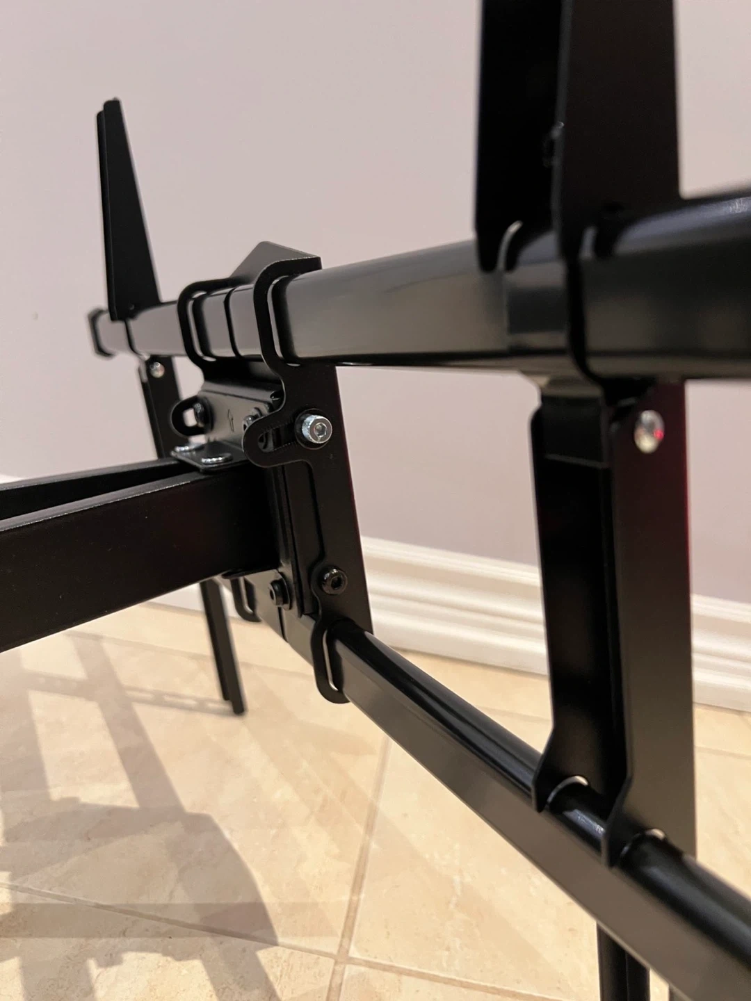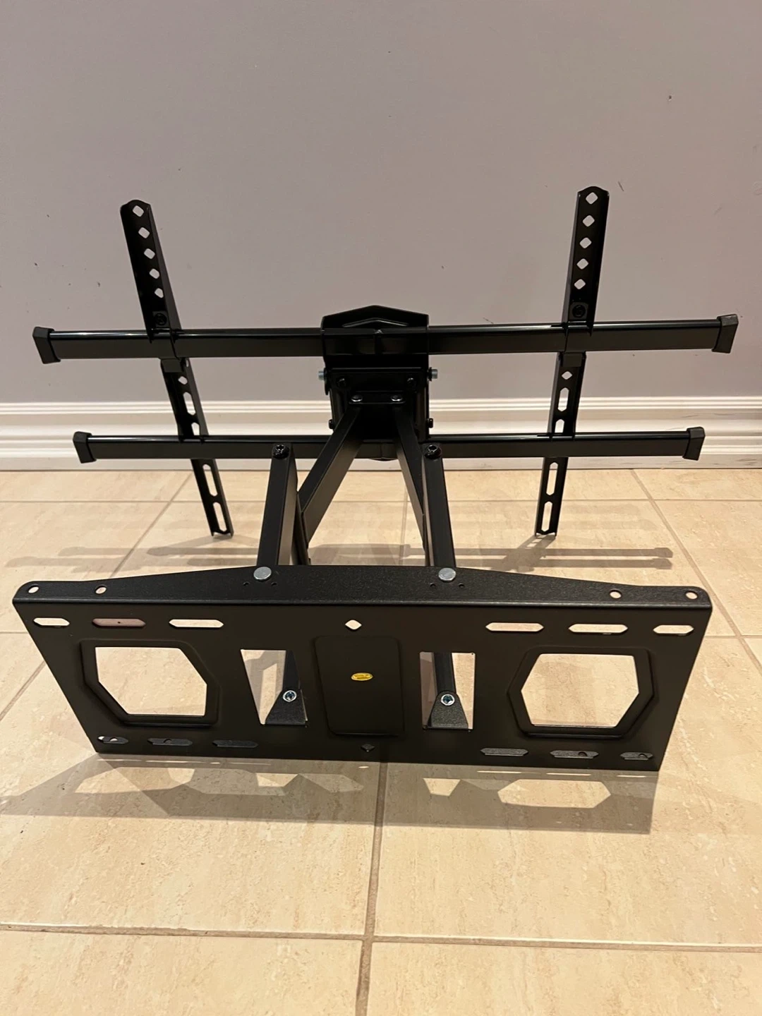 Selling a tilting TV wall mount in black. It's in great condition and ready to be installed. Perfect for mounting your TV securely and saving space!