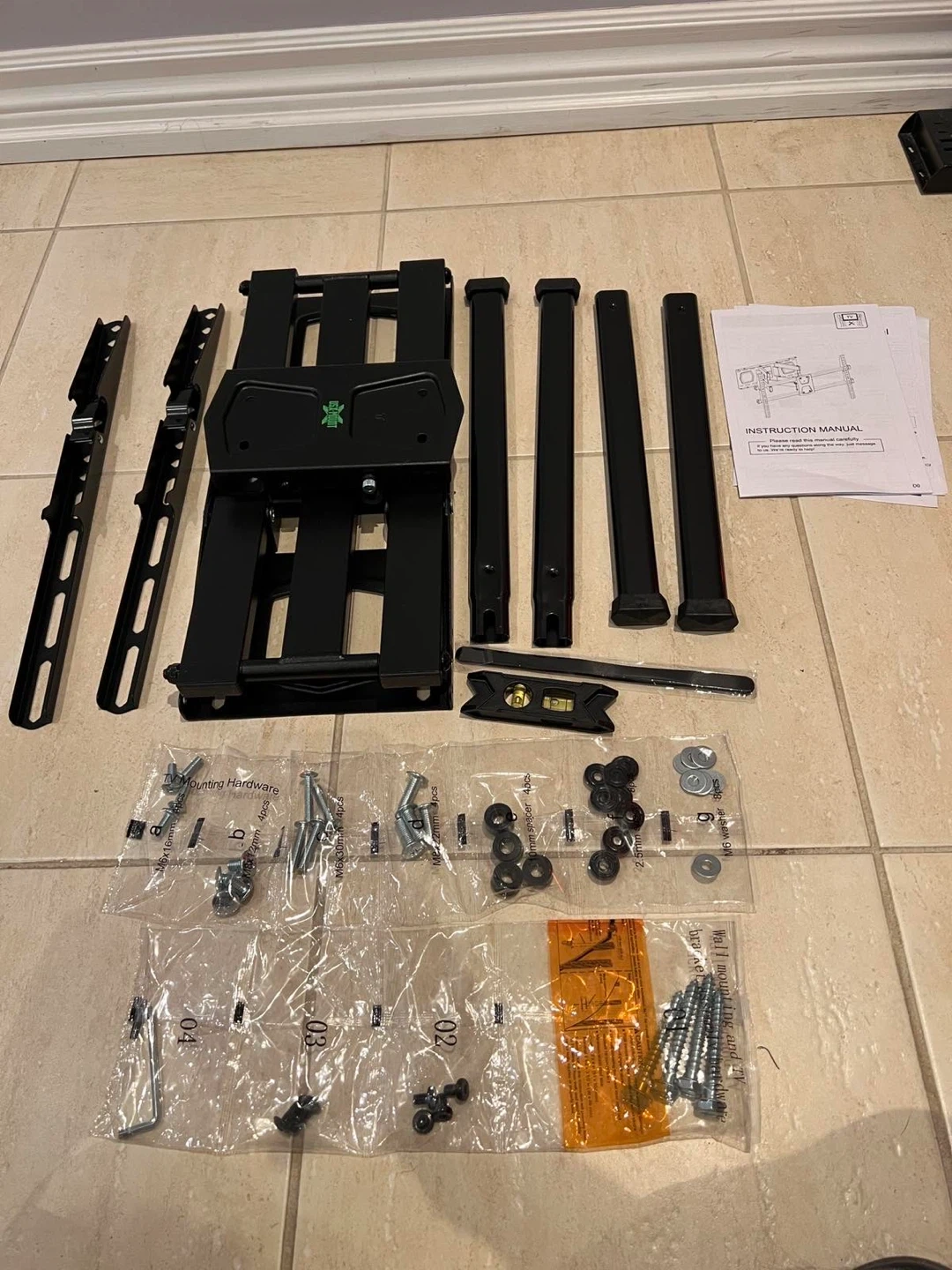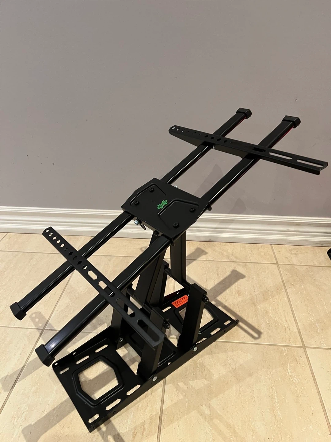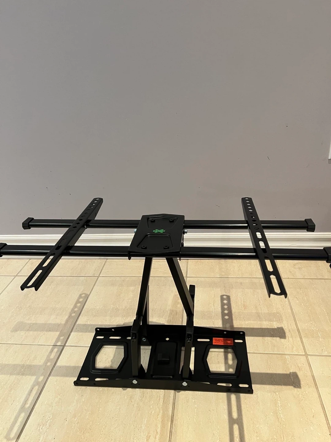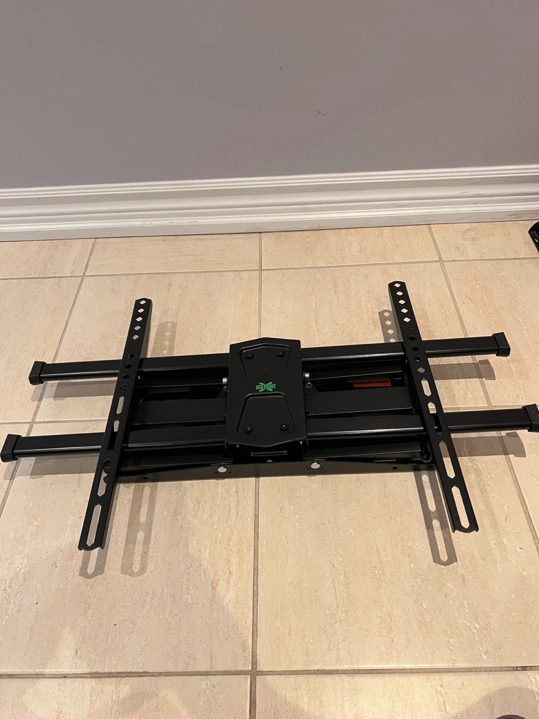 Selling a tilting TV wall mount in black. It's in great condition and ready to be installed. Perfect for mounting your TV securely and saving space!