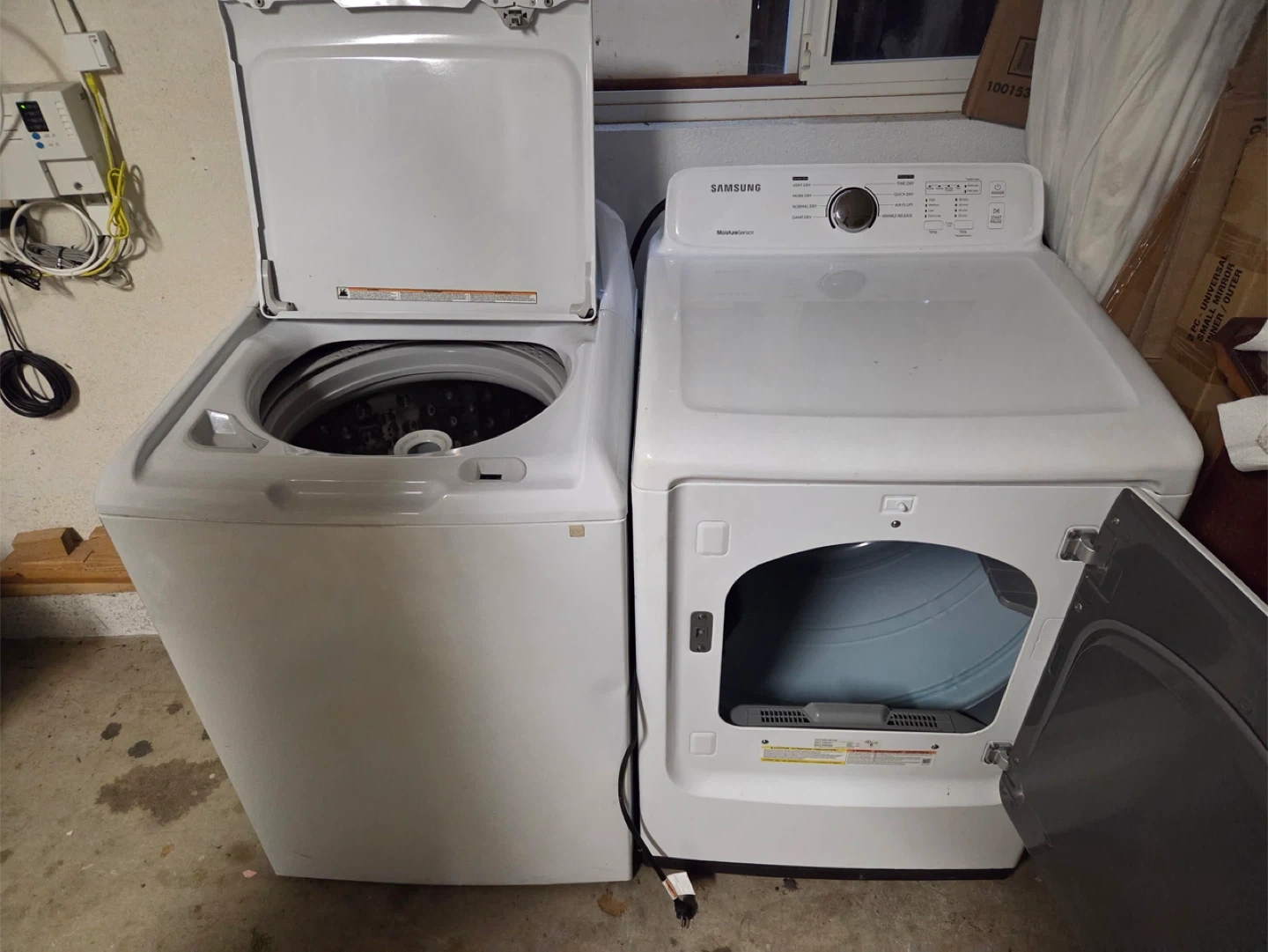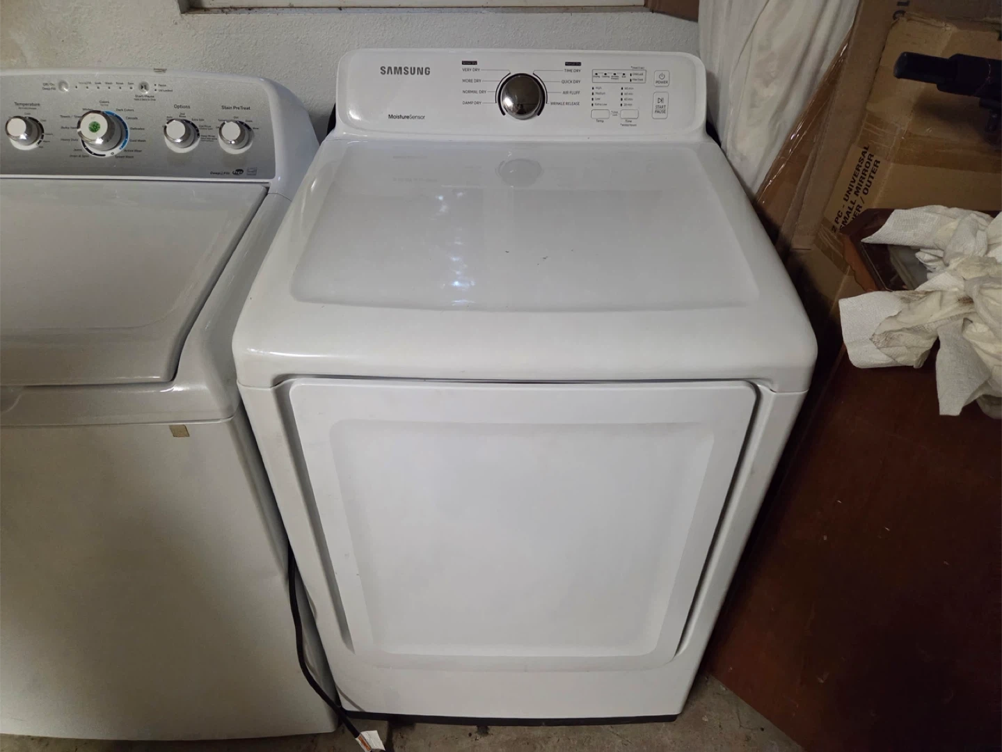 Selling a Samsung dryer with moisture sensor . Also dryer both in great condition and ready for a new home. It's white and has various settings for different types of loads. Perfect for any laundry room!