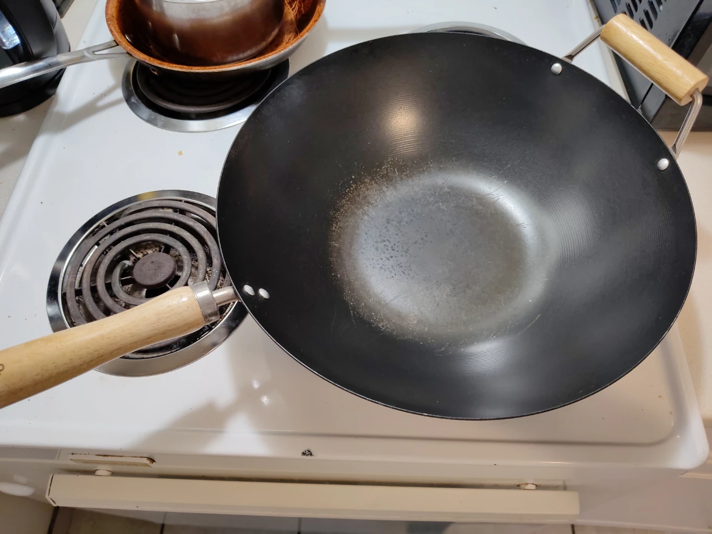 Used Wok with Wooden Handle