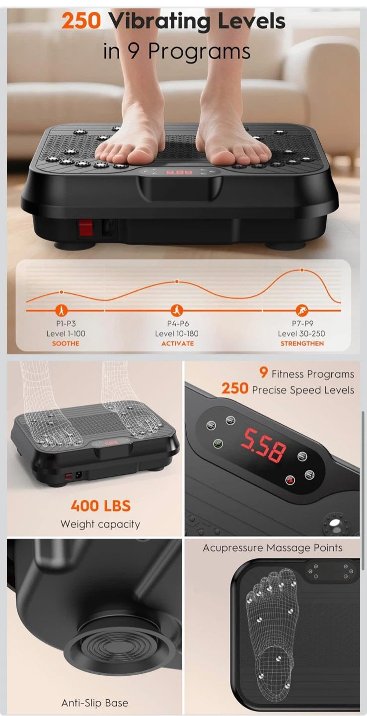 Vibration Plate Exercise Machine, Vibrating Plate for Lymphatic Drainage, 400 Lbs Capacity 250 Speed Levels Whole Body Fat Burner Weight Loss Shake Board, Vibrate Platform Machine
